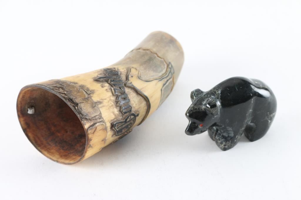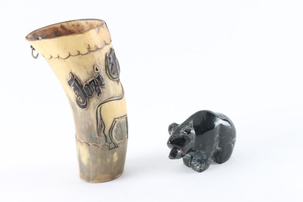 Lot 876 Powder Flask and Bear Fetish