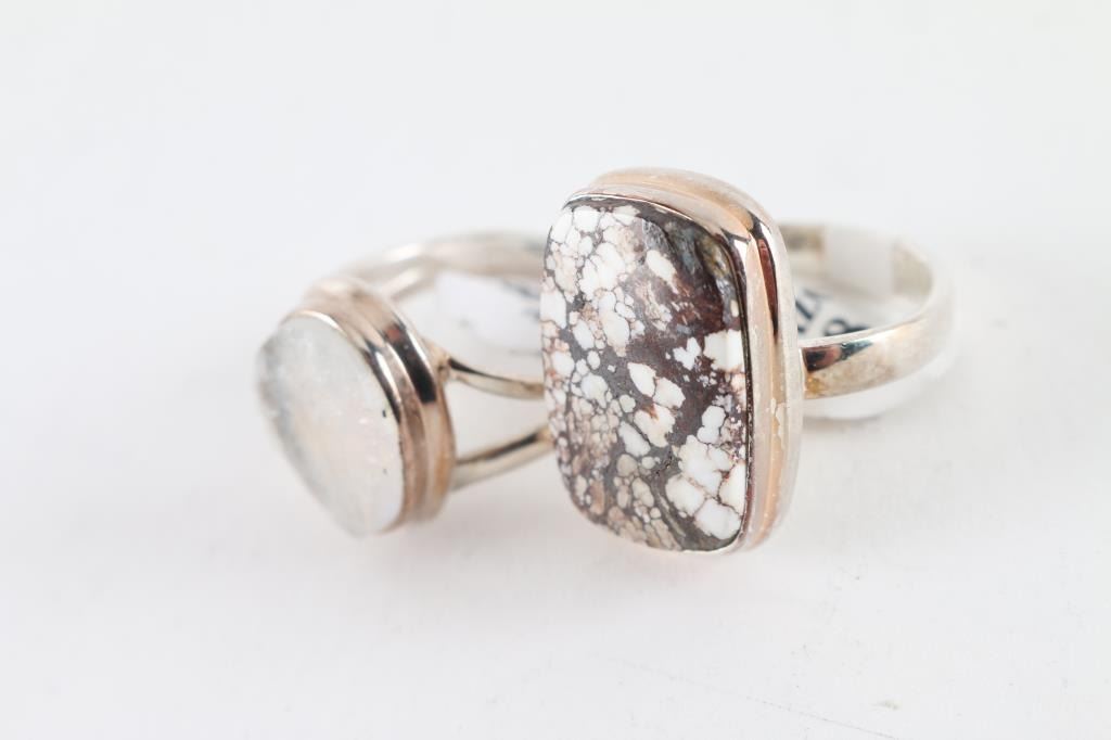 (1) White Buffalo Turquoise Ring set in sterling size 8 (1) Moonstone set in sterling size 8