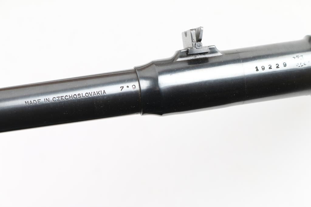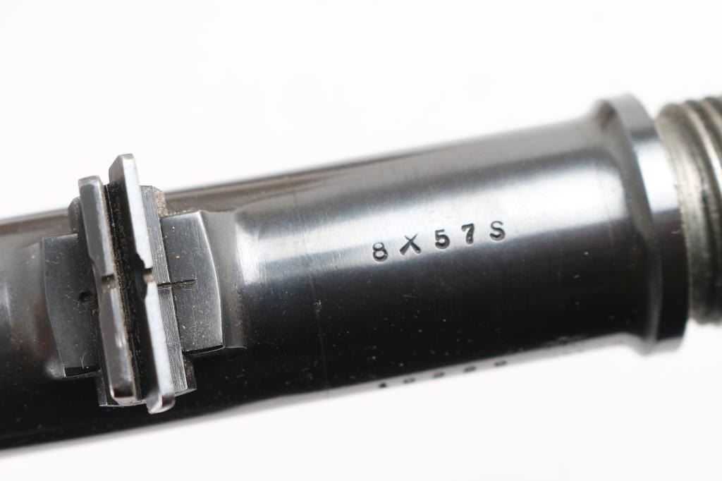 1) Mauser sporter barrel, Made in Czechoslovakia, 8x57S marked, blued, very good overall, 20.5", with sights and forward sling stud. 2) Douglas 270 blank, "10" for 1:10, tapered, 25.5" 3) Swedish Carbine stock, w/ handguard & bands, very good condition. 4) Sporterized military stock for unknown large ring 98 action. 5) Walnut blank, outside rough contoured, no inletting.