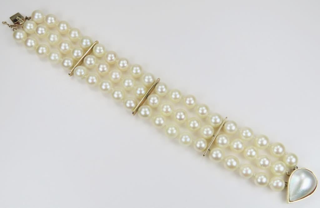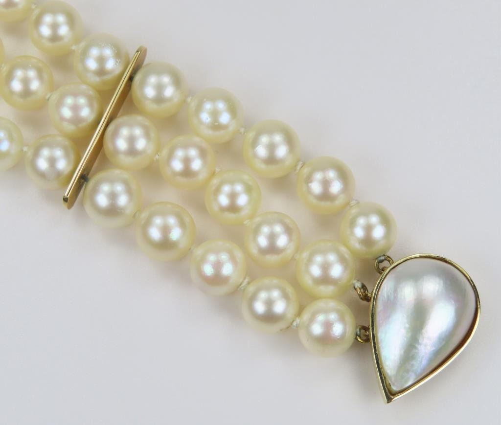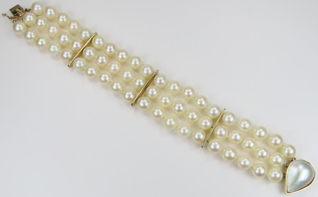 Lot 903a Luxurious Triple Strand Cultured Pearl Bracelet