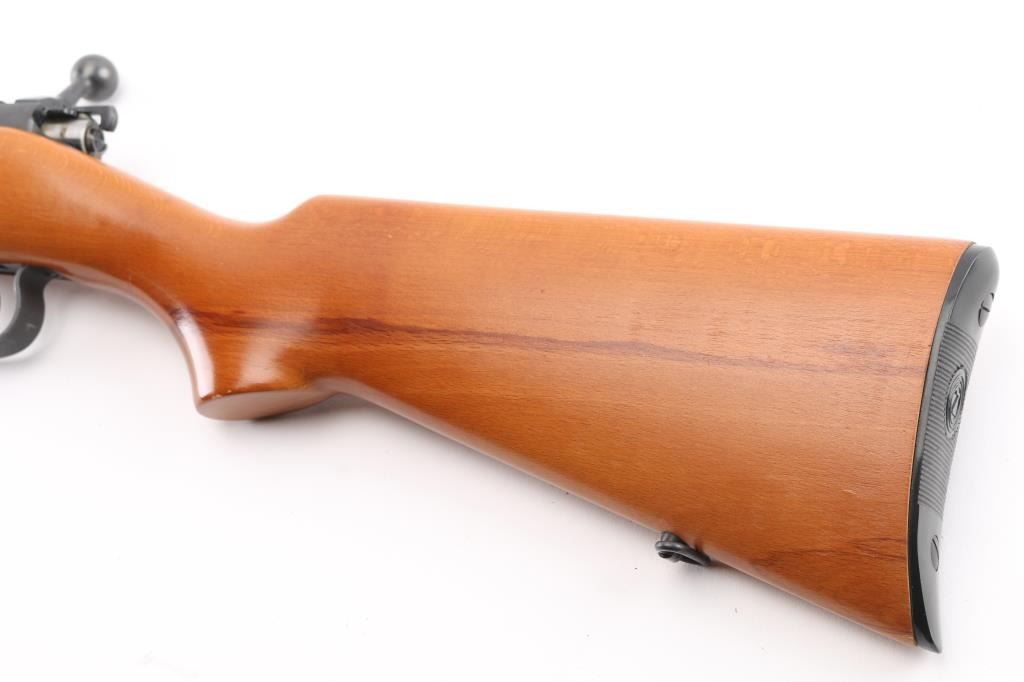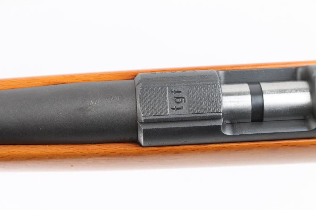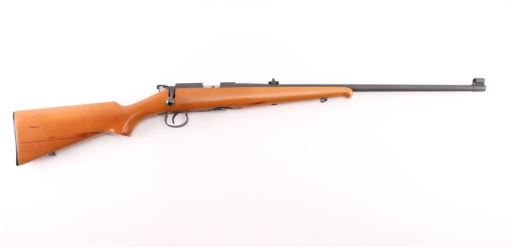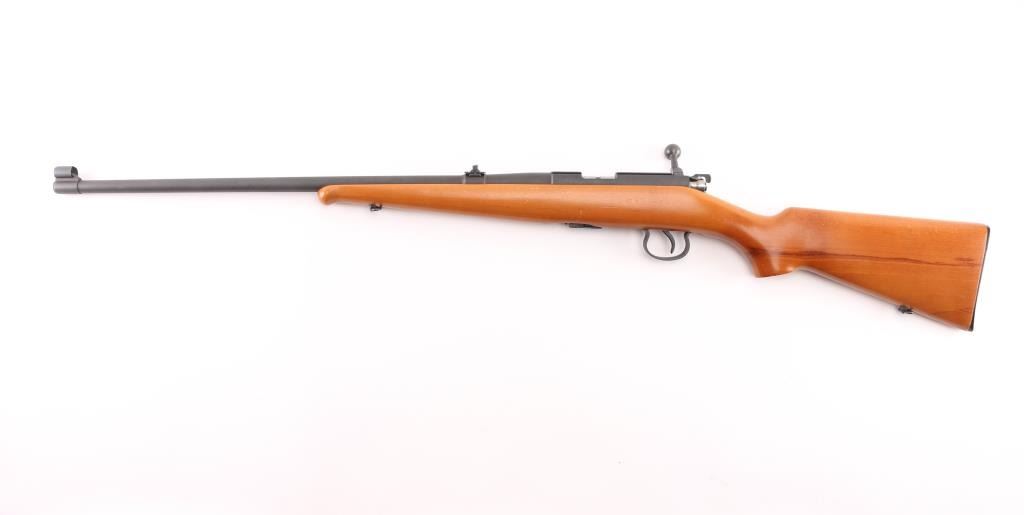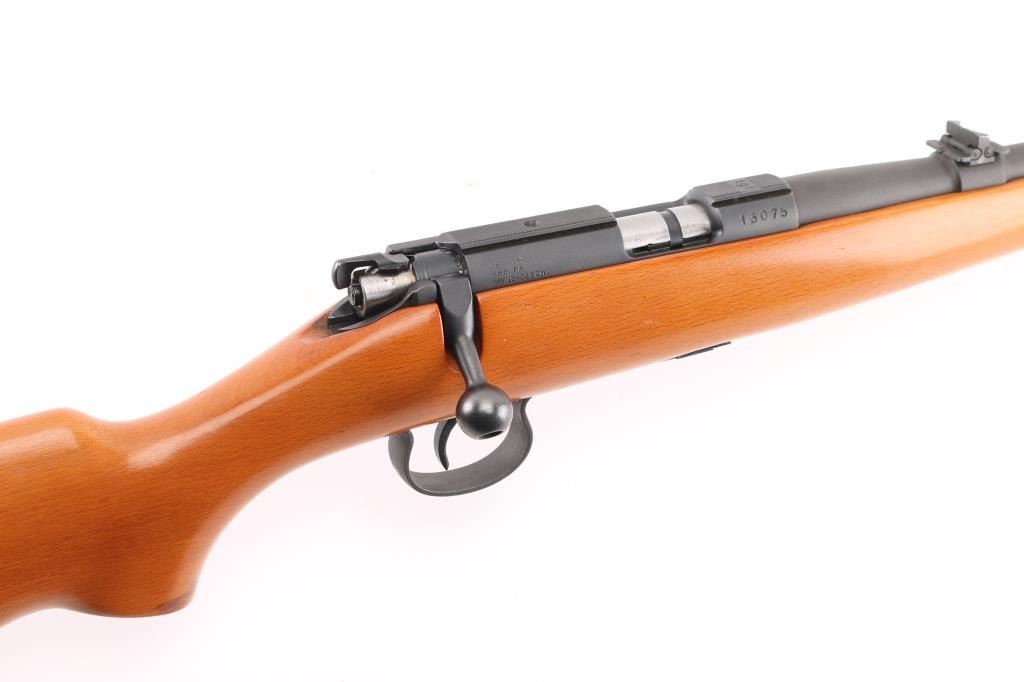 Scarce BRNO Model 1 .22 L.R. bolt action Sporting rifle in excellent condition. Manufactured from 1945-1957, this rifle was also known as the ZKM 451, and was the predecessor of the popular CZ 452 line. This gun has a lot of neat features such as the 50/75/100 meter express rear sight, square bridged receiver with grooves for scope mounting, a straight bolt handle, all steel trigger guard and magazine. The stock features a pistol grip, straight comb and schnabel forend. The condition is excellent with approximately 98% of the matte blue finish remaining. All functions work as they should, and the bore is bright and shiny. The stock is free of cracks, and shows just a couple of very tiny handling marks. There are a couple of imperfections in the oil finish (behind the trigger guard and near the butt on the left side), these could be easily rubbed out with some finish. BRNO rifles were very popular world wide, but are seldom seen in the United States due to the fact that they were produced behind the Iron Curtain during the Cold War. These rifles are known to be highly accurate and reliable. Imported by KBI, left receiver. NRA Condition-Excellent. C&R Firearm.