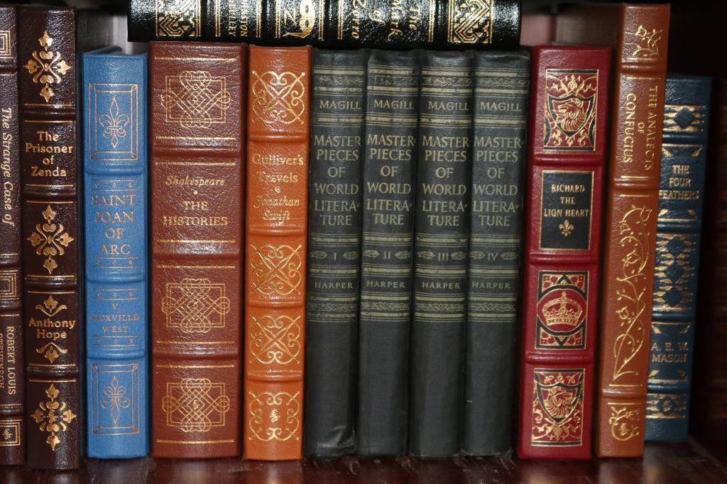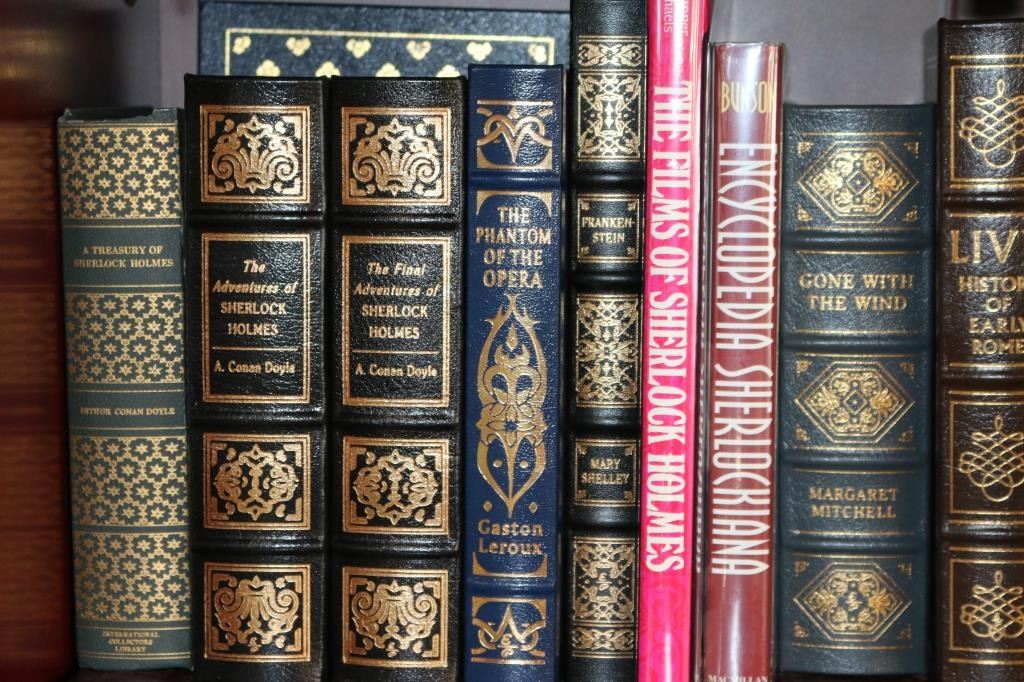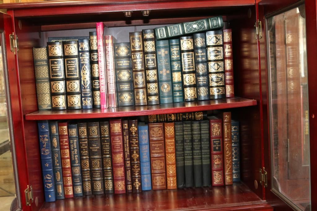 Beautiful collection of books including Sherlock Holmes, Dracula, Masterpieces of World Literature, Richard the Lionheart, Confucius, Les Miserables and more. Comes with the bookcase, approx 31"x29"x16". No shipping of this lot. FOR LOCAL PICKUP ONLY. From the Estate of Joseph Musso Collection.