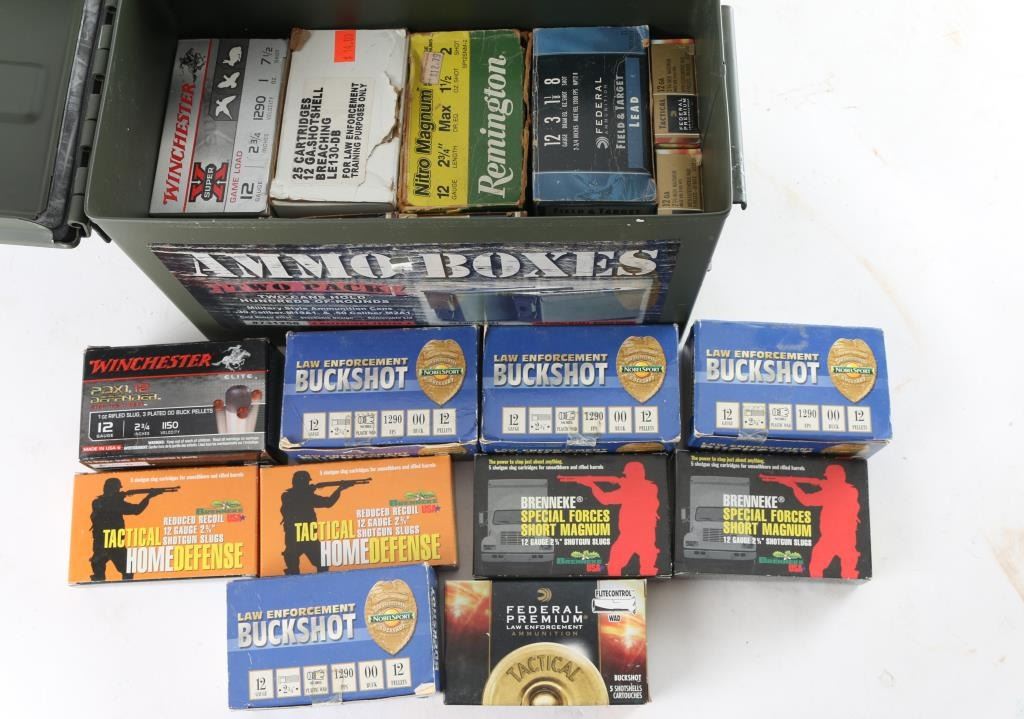 Approx. 205 rounds of 12 Gauge factory new ammunition. Various makers, chamber & shot sizes. All in factory boxes.