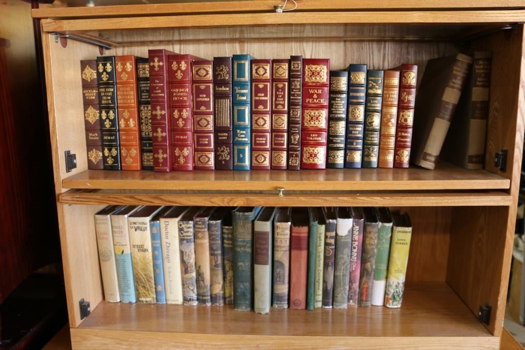 Beautiful Collection of books from Mark Twain, Dumas, Dickens, Robert Lewis Stevenson, Tolstoy, Doctor Zhivago and more. Included is the bookcase, approx 36"x28"x12". No shipping of this lot. FOR LOCAL PICKUP ONLY. From the Estate of Joseph Musso Collection.