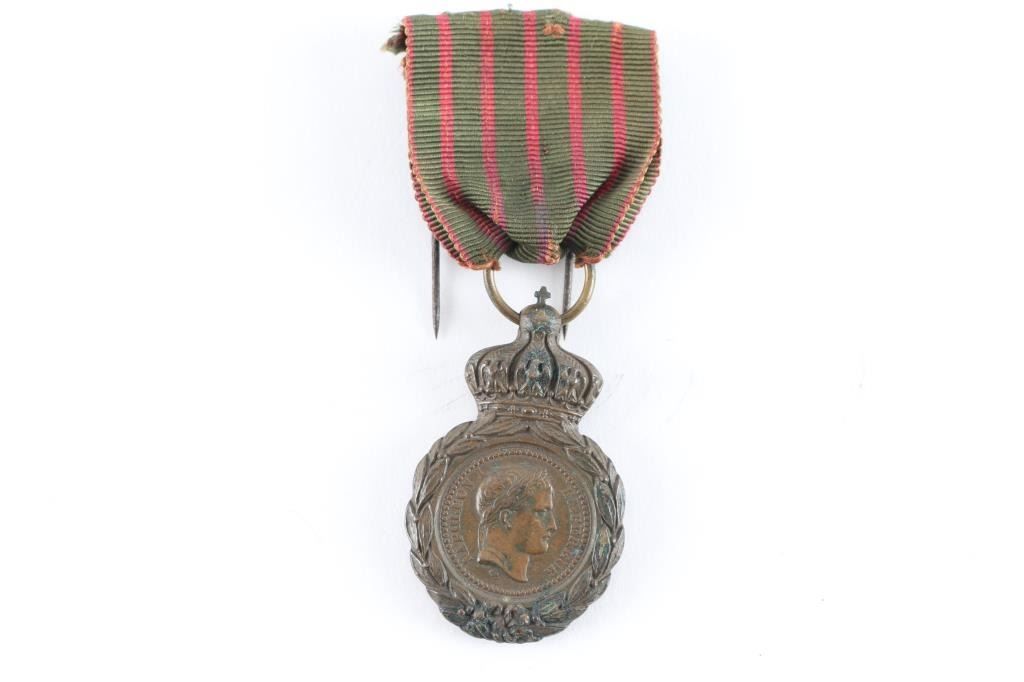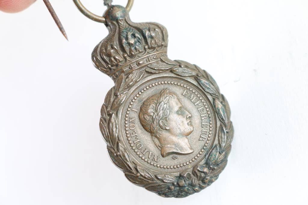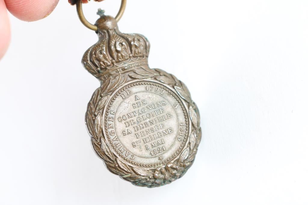 Established by decree of Emperor Napoleon III to recognize participation in the campaigns led by Emperor Napoleon I. The first French Campaign Medal. Campaigns: French revolutionary Wars & Napoleonic Wars. Awarded to French & foreign soldiers. Last awarded in 1870, 305,000 French soldiers & 55,000 foreigners. Obverse: Napoleon Bonaparte laureate bust to the right within wreath, above a crown .Legend: NAPOLEON I EMPEROR. Reverse reads: CAMPAGNES DE 1792 A 1815. A SES COMPAGNONS DE GLOIRE SA DERNIERE PENSEE ST. HELENE 5 MAI 1821 Translation: TO HIS COMPANIONS IN GLORY HIS LAST THOUGHT ST. HELENE MAY 5, 1821. Most of these medals you see have replaced ribbons, or have been cleaned. This one is all original.