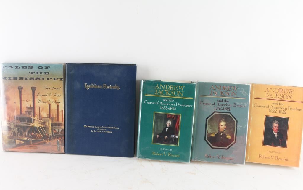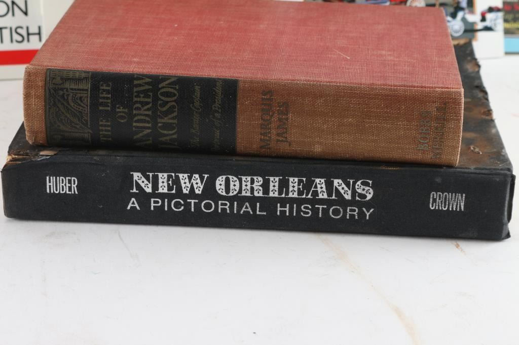 including several historical Andrew Jackson books, Louisiana, two Campaign Series #28 New Orleans 1815 by Osprey Military and a 1936 An Early History of Fayette County 1936 by Leonie Rummel Weyland and Houston Wade. Good overall condition.