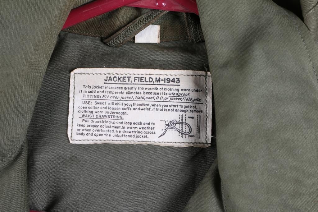 Two Total. Belonging to a Ordnance Technical Corporal of the Alaska Defense Command. Has collar devices, 3 overseas service bars. 1 service stripe, and the "Ruptured Duck" discharge patch. Dated 1945, size 34R. 4 medal ribbon bar, Army good conduct, American campaign, Pacific campaign, and WW2 victory. Excellent Condition. M1943 field jacket with M1943 hood attached. Also size 34R. These two items came together. Excellent condition.