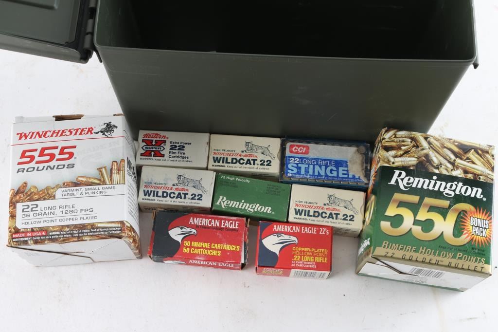 Approx. 1455 rounds of .22 Long Rifle factory new ammunition. Various makers, all in metal ammo can.