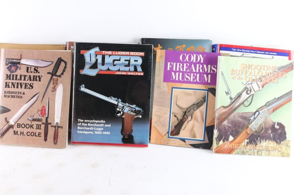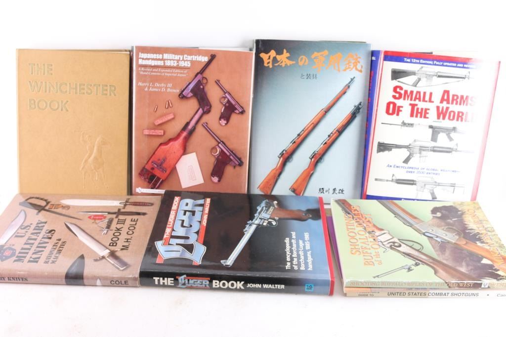 Titles include: "Small Arms Of The World, 12th Edition", "Japanese Military Cartridge Handguns 1893-1945"; "The Luger Book" and others.
