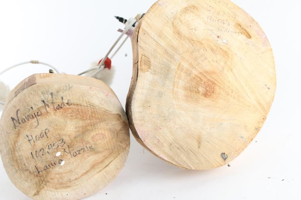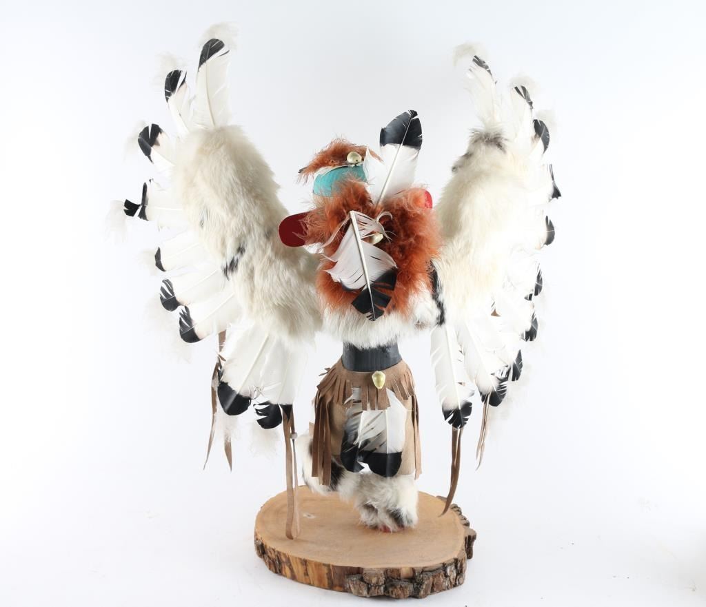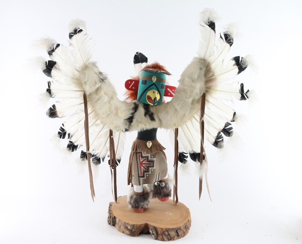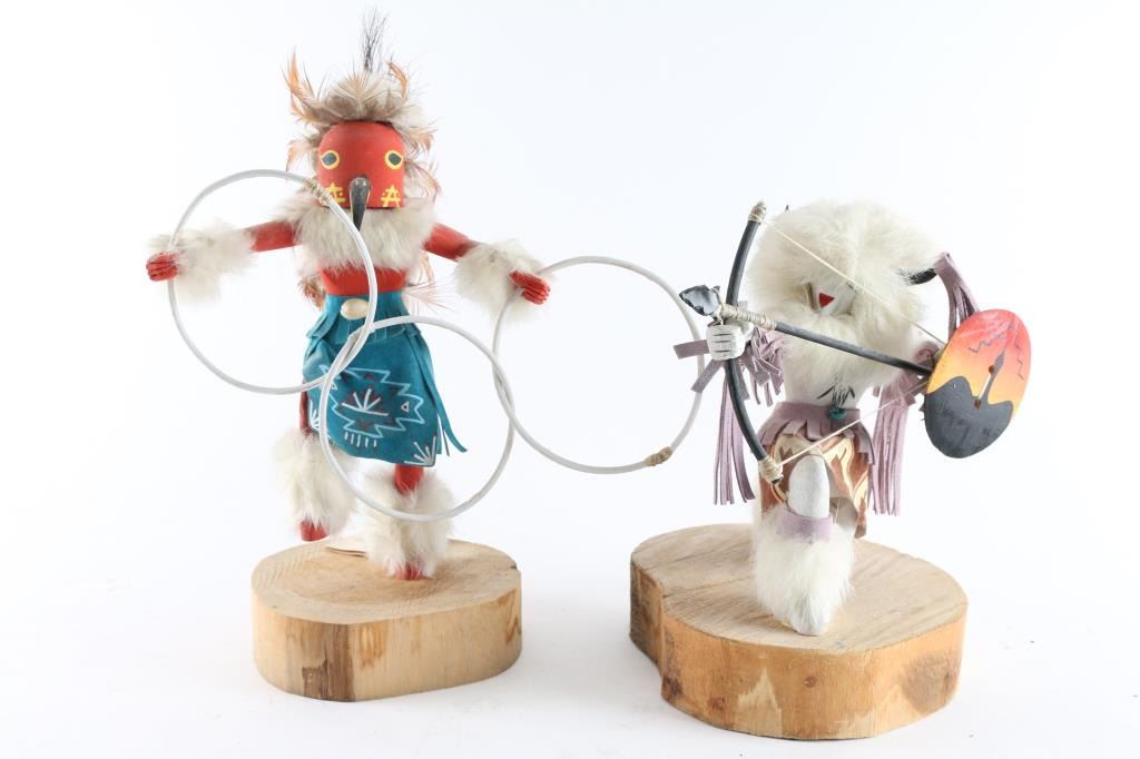 (1) Eagle Dancer by Marvin Martineze, measures 20"x 11"W (2) Buffalo Kachina, signed on base 11"x8" (3) Hoop Dancer by Laura Yazze, 13"x8" with minor losses
