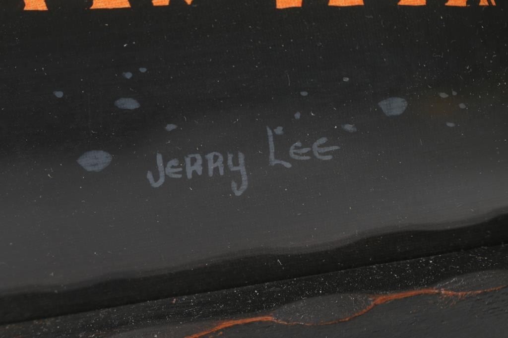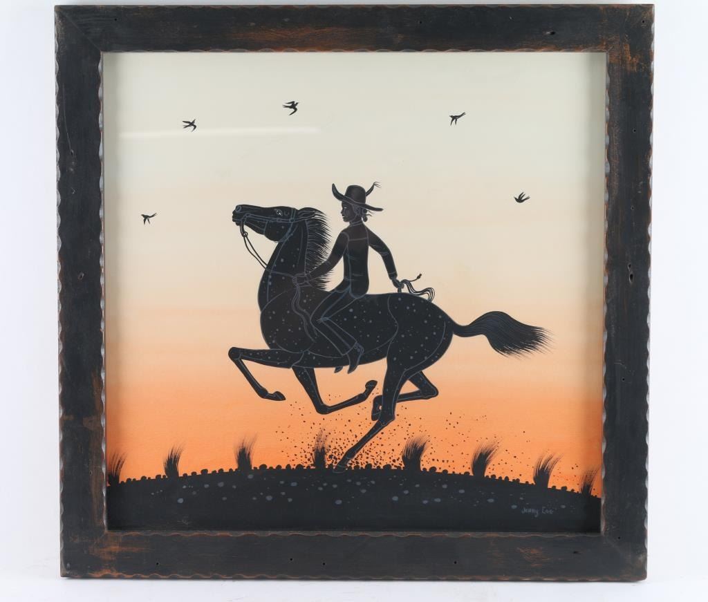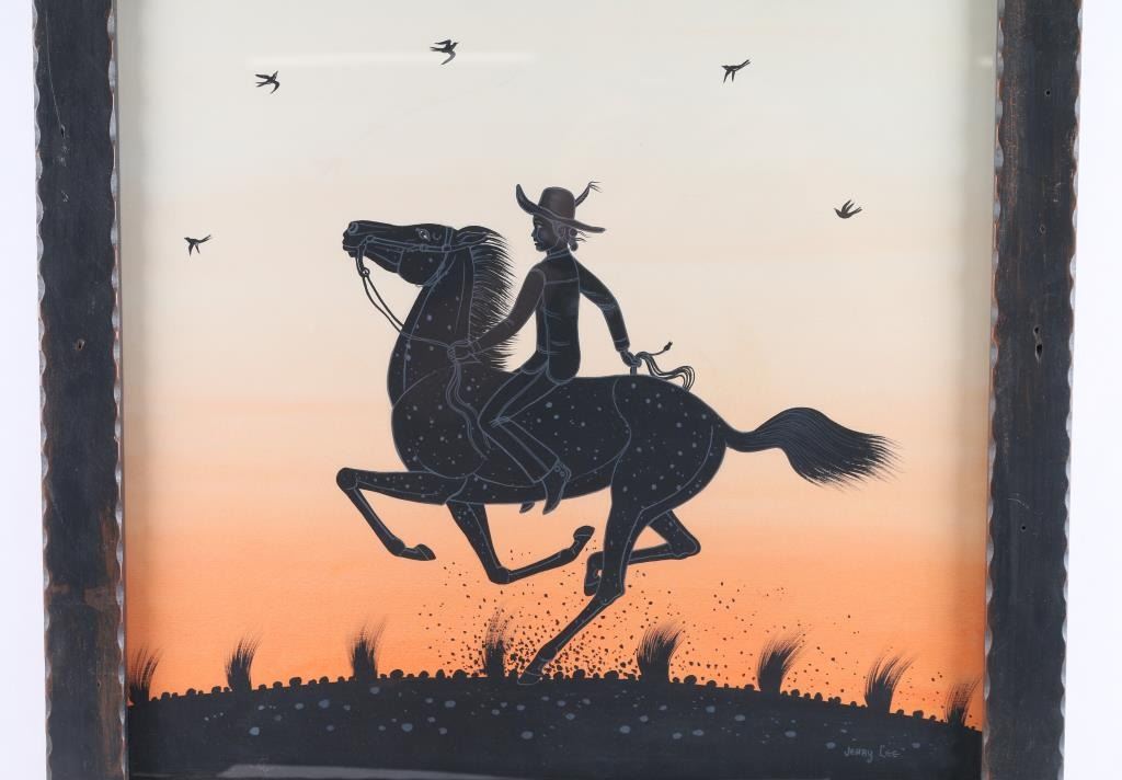 By Navajo artist "Jerry Lee" signed lower right done on acrylic paper, matted and framed. Image size measures 17x16.