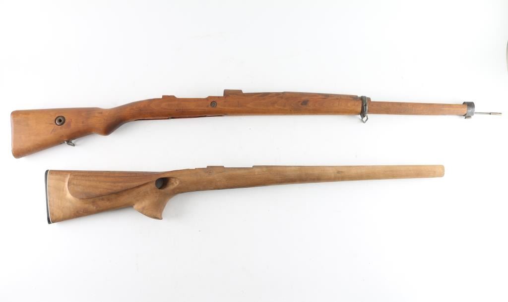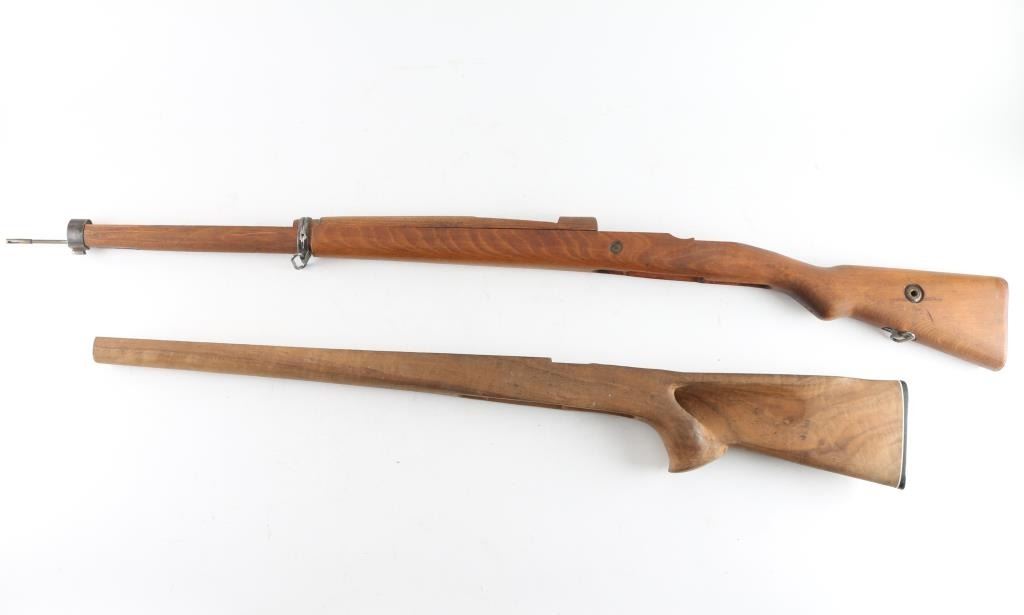 1) For approx. 29" barrel with handguard, bands, sling swivels, metal butt plate & cleaning rod. Turkish Military 2) Left hand sporter w/ plastic butt plate. Both in very good condition.