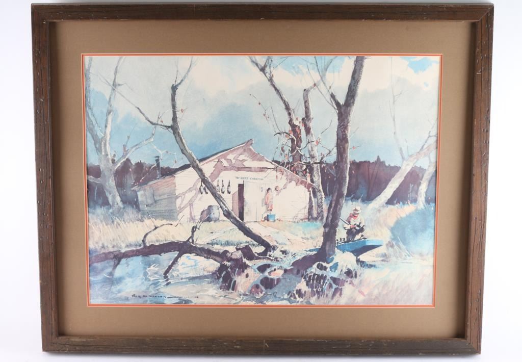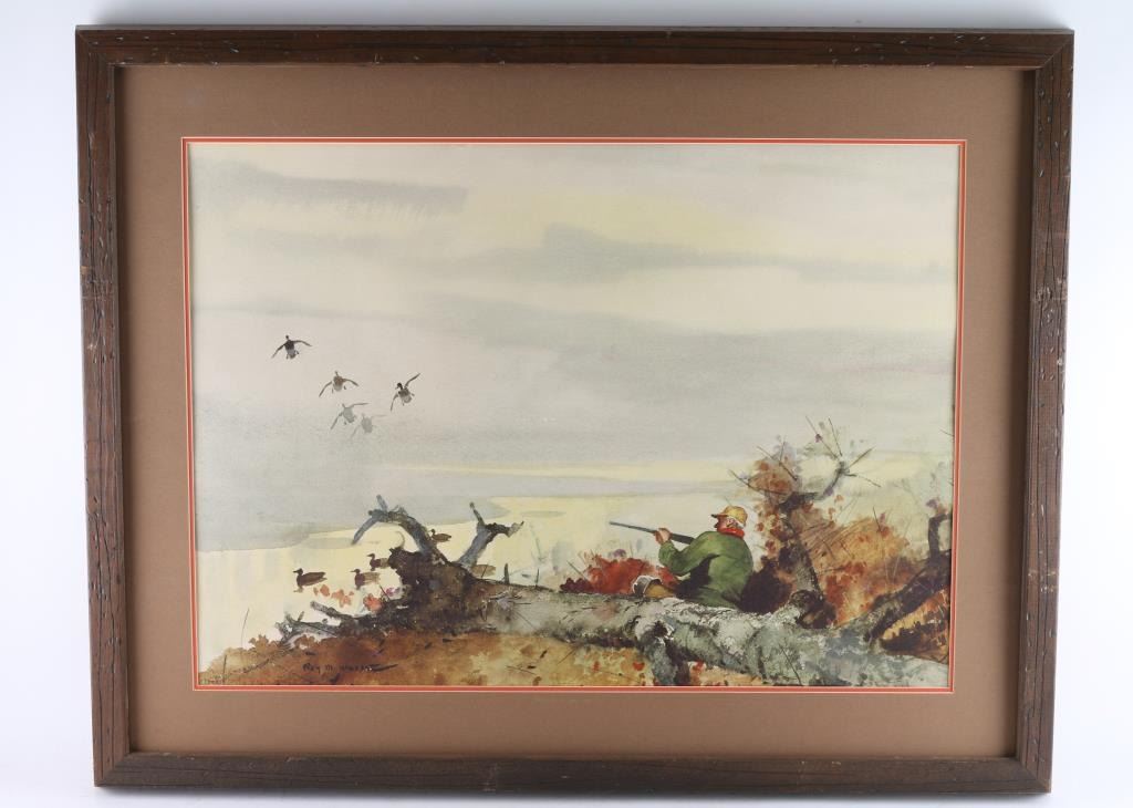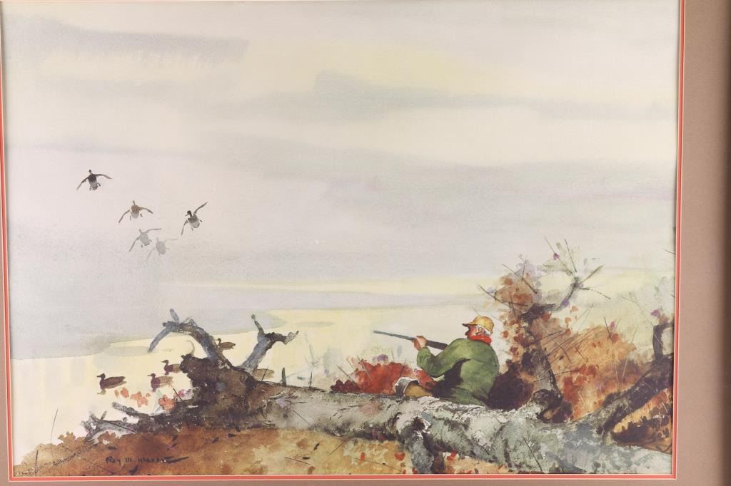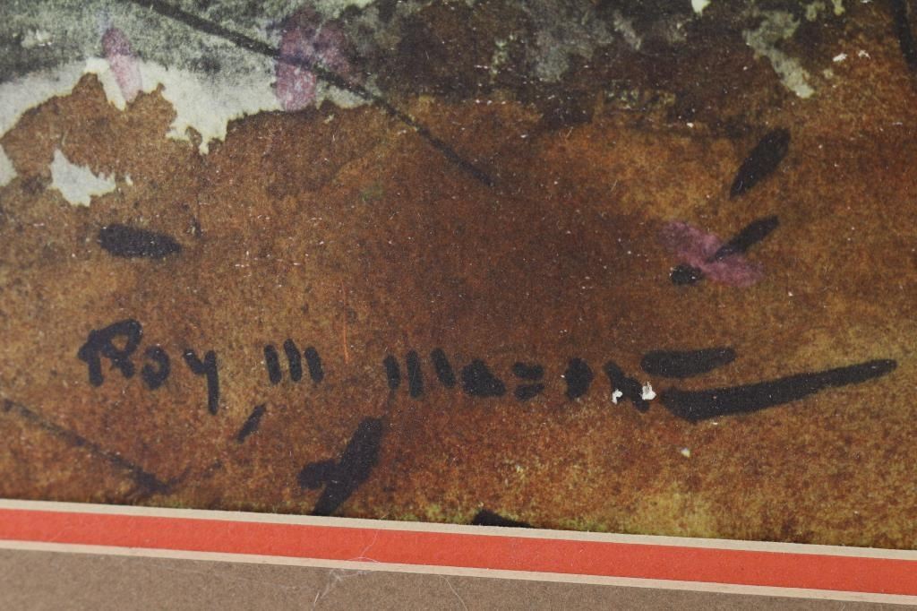 Both By "Roy Mason" (1.) Entitled "The Ritz" , framed and matted , wood is loose to frame. Image size measures 29x21 (2.) By "Roy Mason" entitled "Open Season" framed and matted , image size measure 29x21.