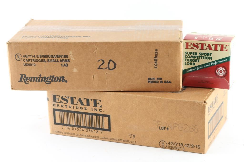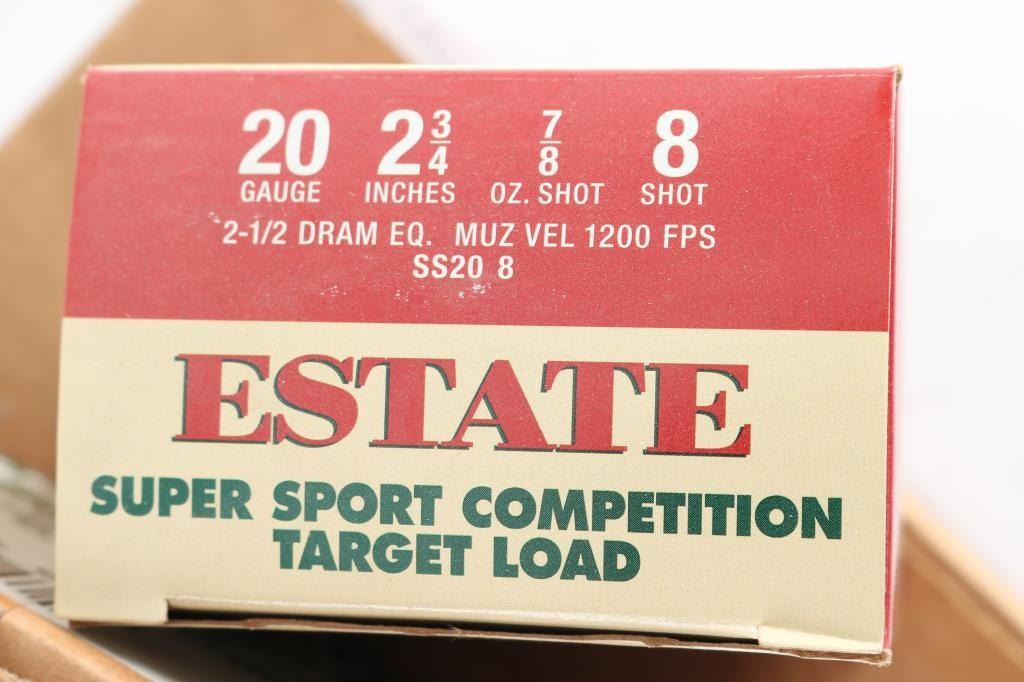 Approx. 450 rounds of 20 Gauge factory new ammunition. Approx. 250 Remington 2 3/4", 9 shot & approx. 200 rounds of Estate 2 3/4", 8 shot. In factory boxes.