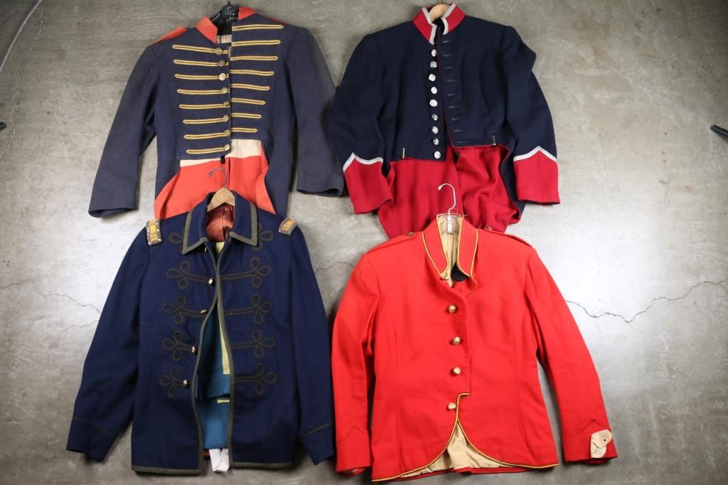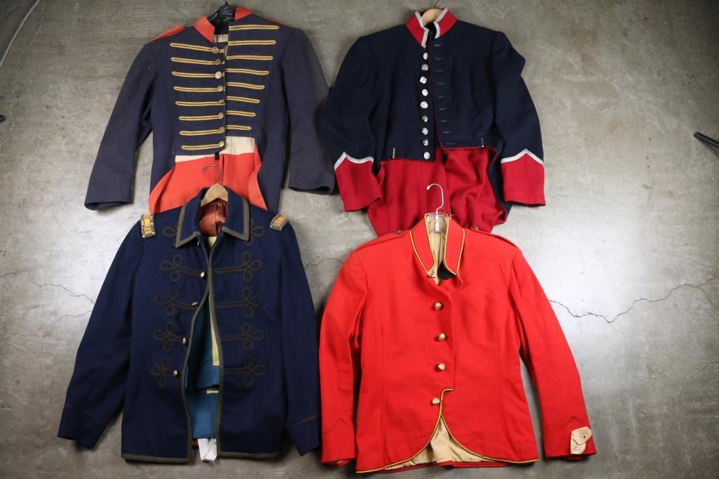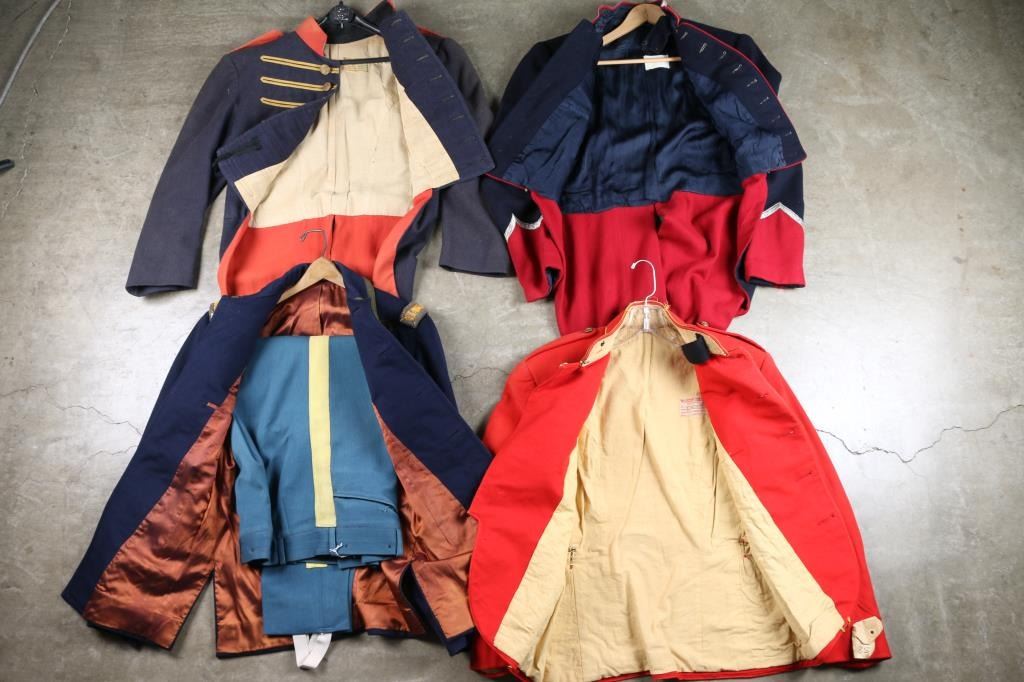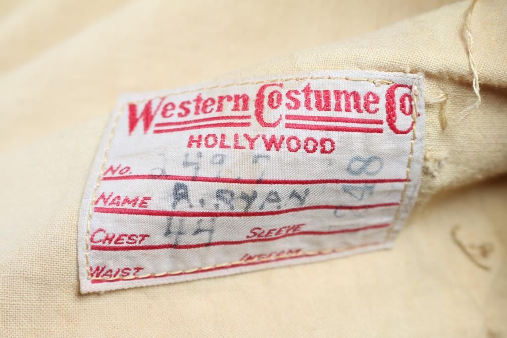 From the Golden Age of Hollywood. Four vintage move prop military uniforms, all stamped, and sewn in tags of the Western Costume Co. Hollywood. Two British, and two U.S. Naval, and Blue tunic with original maker marked eagle buttons, and bullion wire cavalry Captains shoulder bars. Has the light blue trousers with yellow stripes. All in very good condition. From the collection of Joe Musso, who had a massive Movie prop collection.