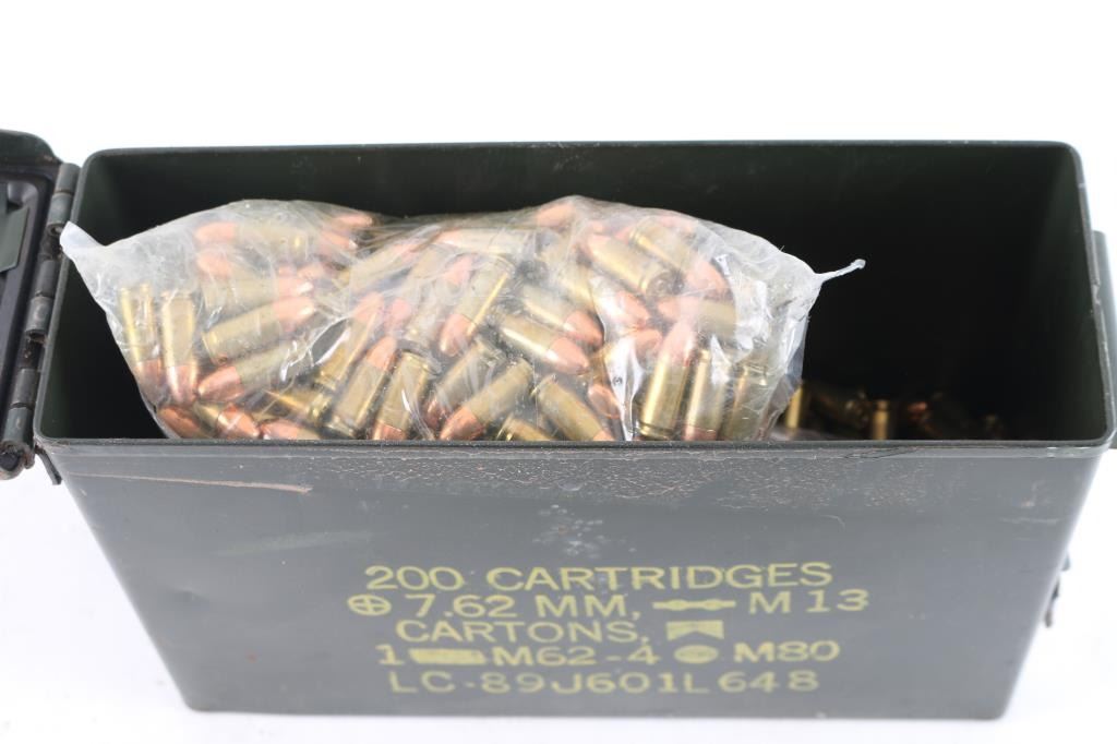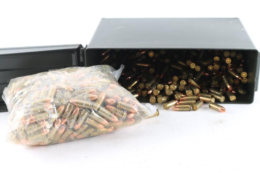 Approx. 26 Lbs. of 9mm ammunition, various makes, FMJ, half in plastic bag and other half loose in metal ammo can.