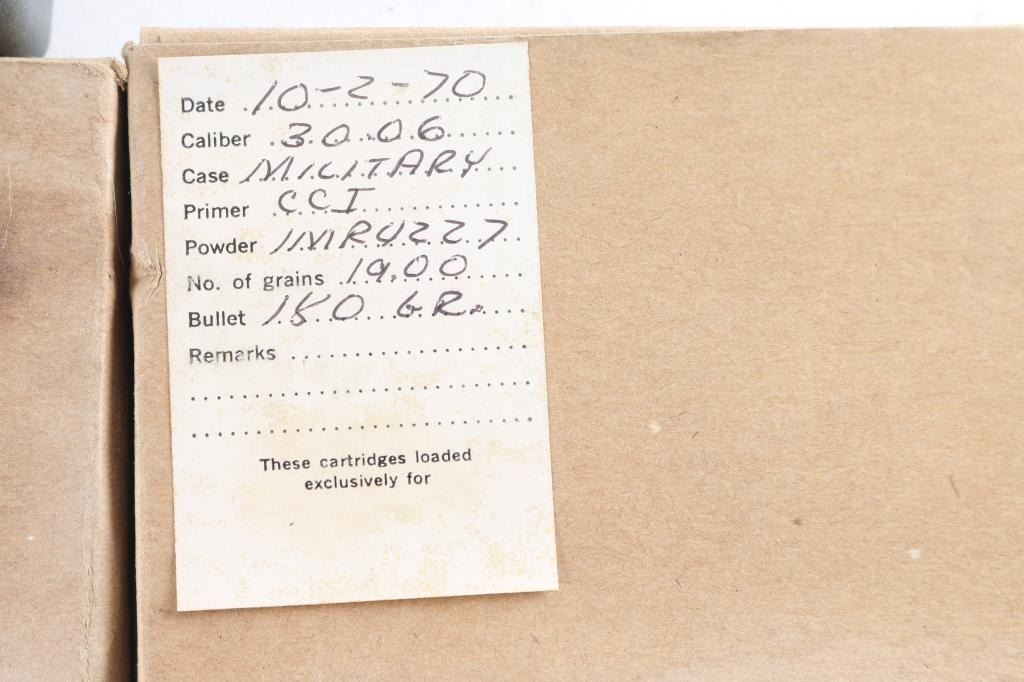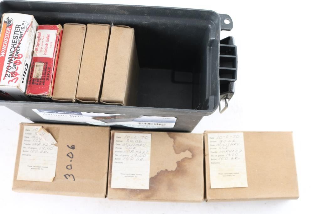 Approx. 160 rounds of 30-06 ammunition. 160 rnds of military load w/leads bullet; 20 rnds of Hornady 180 Gr. Spire Pt.; 20 rnds of different makers of Soft Pt. All boxed in plastic ammo can.