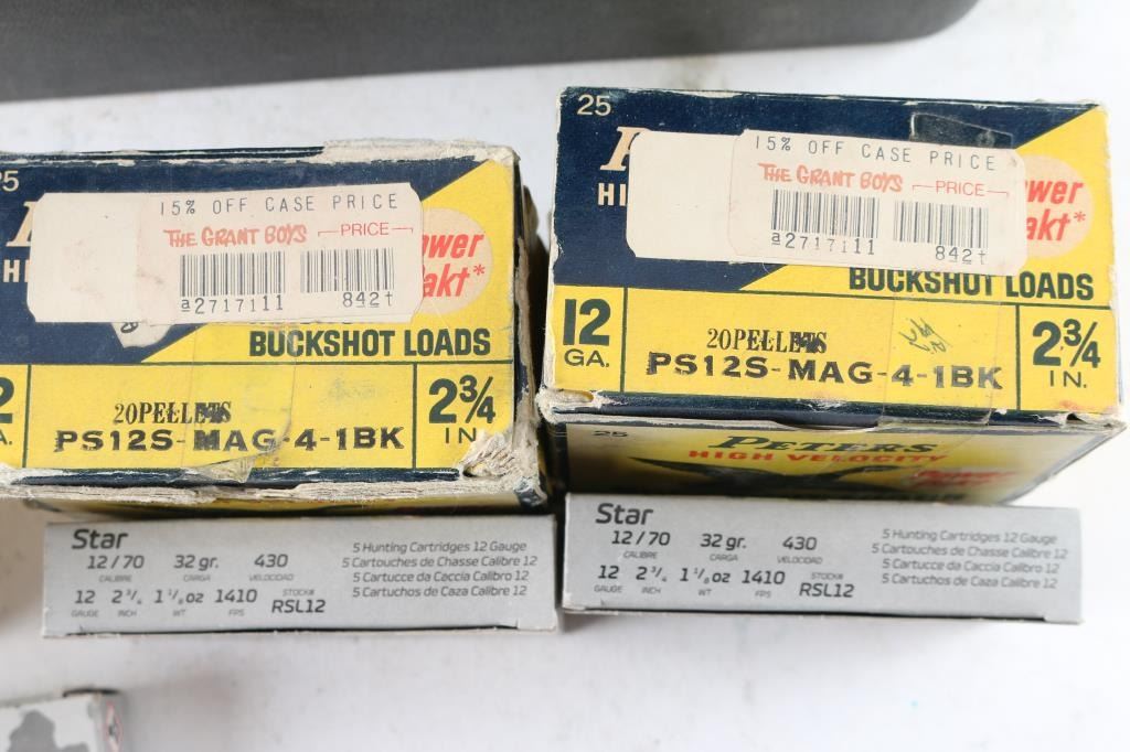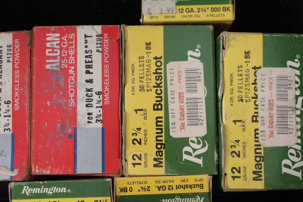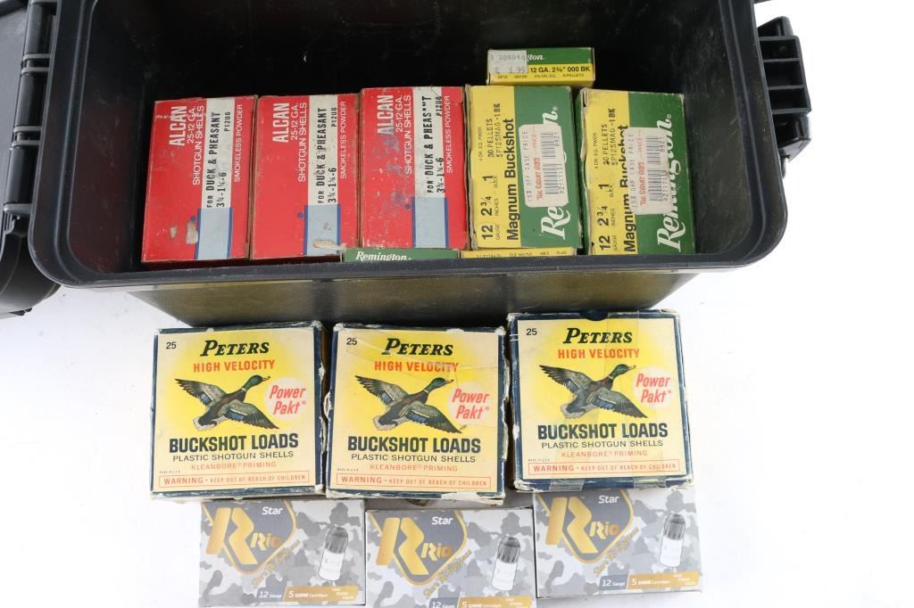 Approx. 230 rounds of Alcan, Peters & Remington 12 Ga. shotgun ammunition, various loads, in factory boxes. All in plastic ammo box.