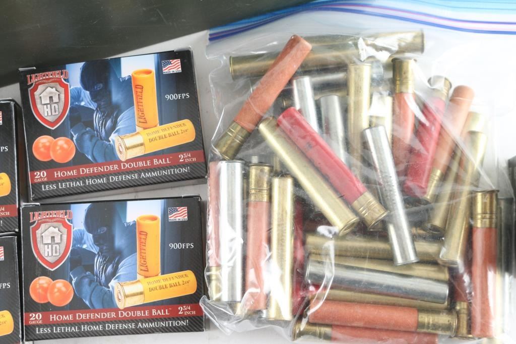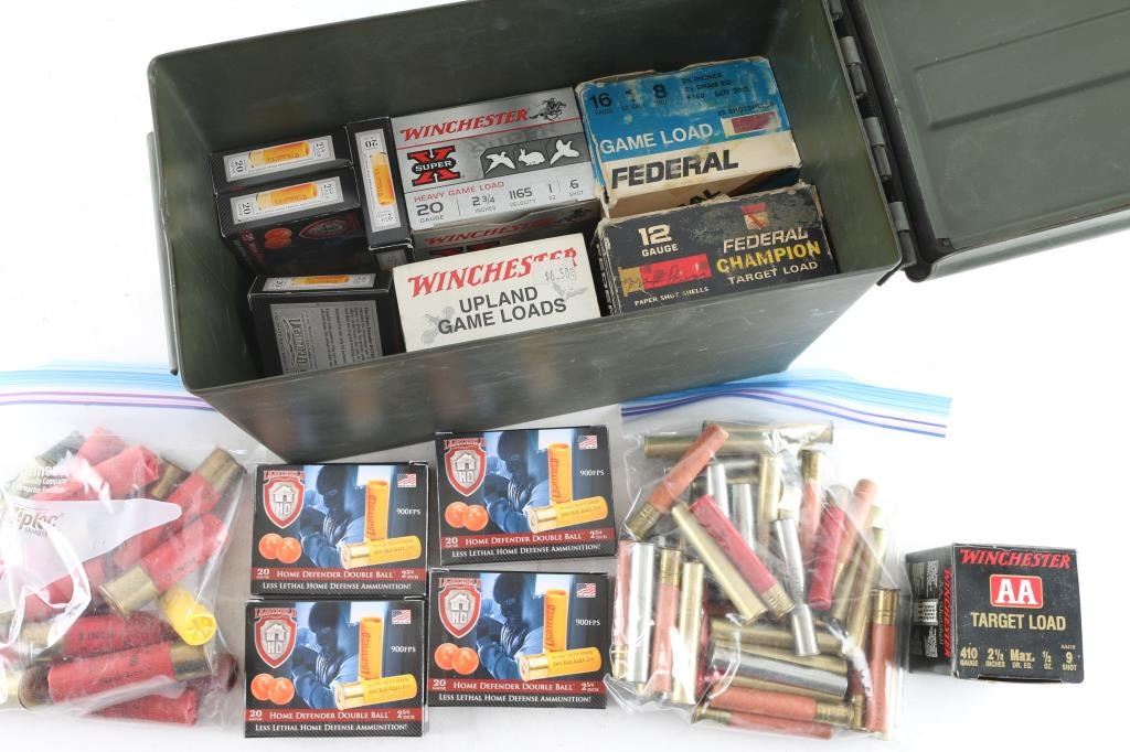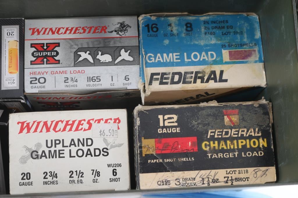Approx. 180 rounds of reloaded and some factory shot shells. Approx. 25 rnds of 12 Ga.; approx. 25 rnds of 16 Ga.; approx. 40 rnds of 20 Ga.; approx. 20 rnds of .410 Ga.; approx. 40 rnds of Lightfield 20 Ga.; approx. 20 rnds of loose 12 Ga. in plastic bags and factory boxes.