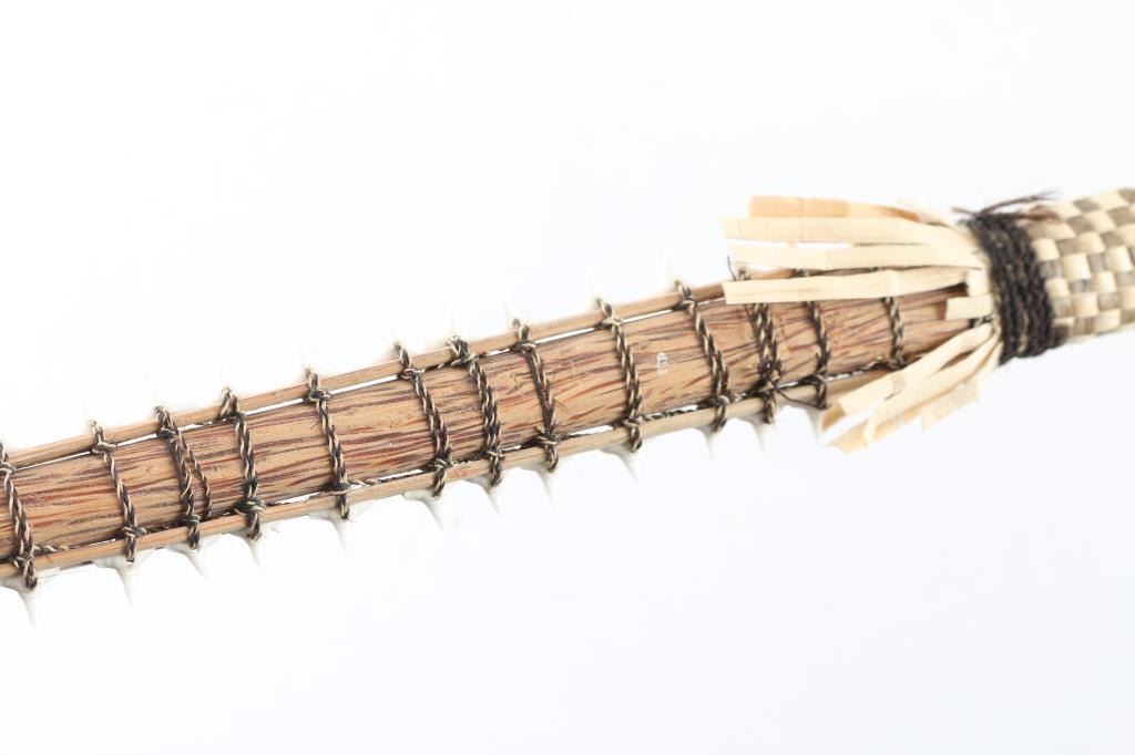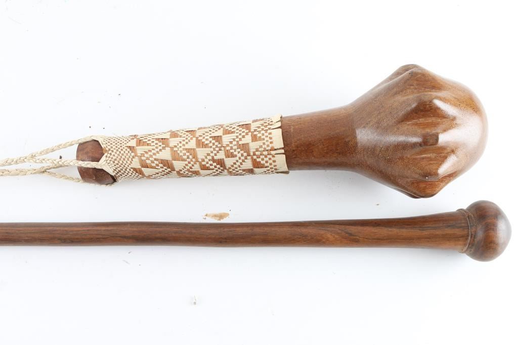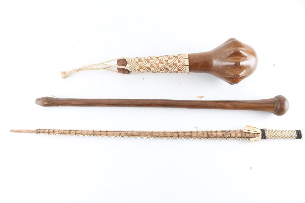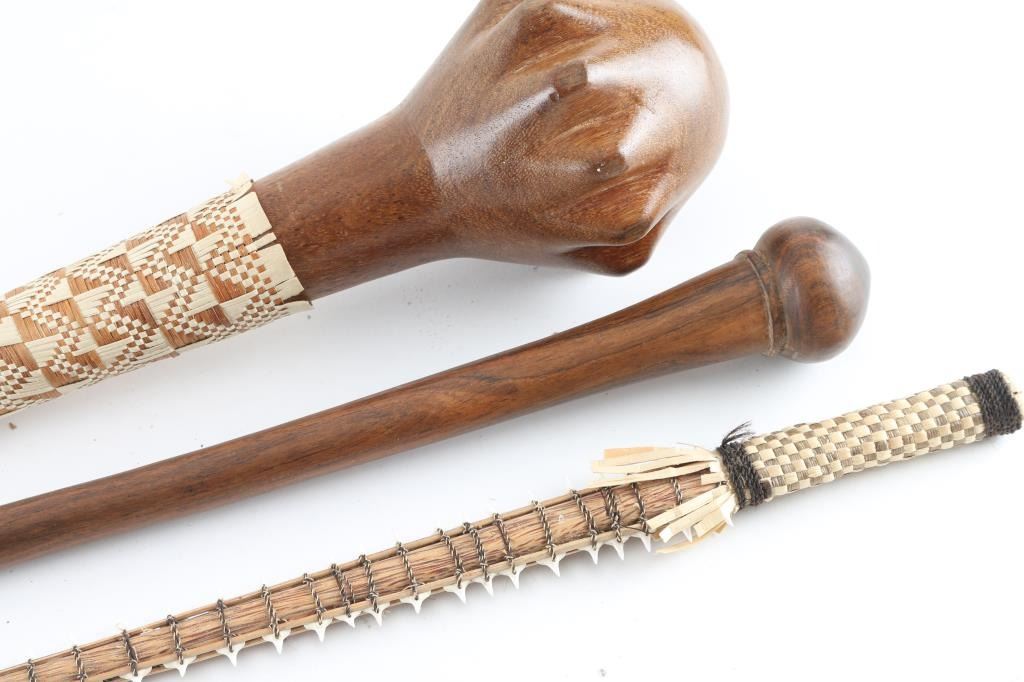 including a Tahitian wooden skull crusher, another wooden skull crusher and a spiked cane.