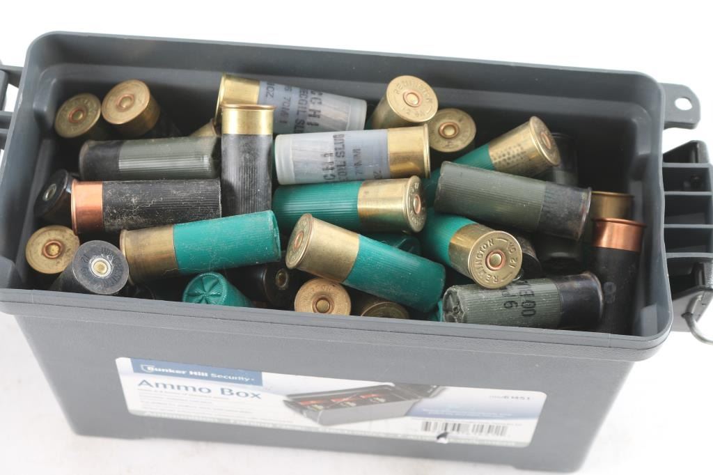 Over 11 Lbs. of miscellaneous 12 Gauge 2 3/4" shotshells. Various brands & shot sizes. All loose in plastic ammo can.