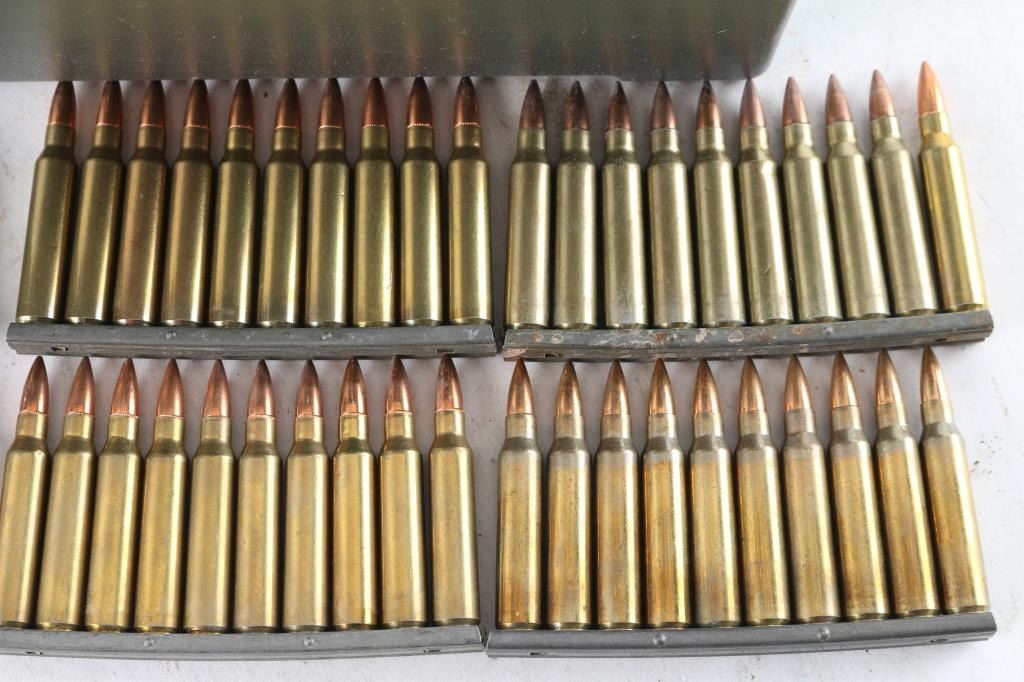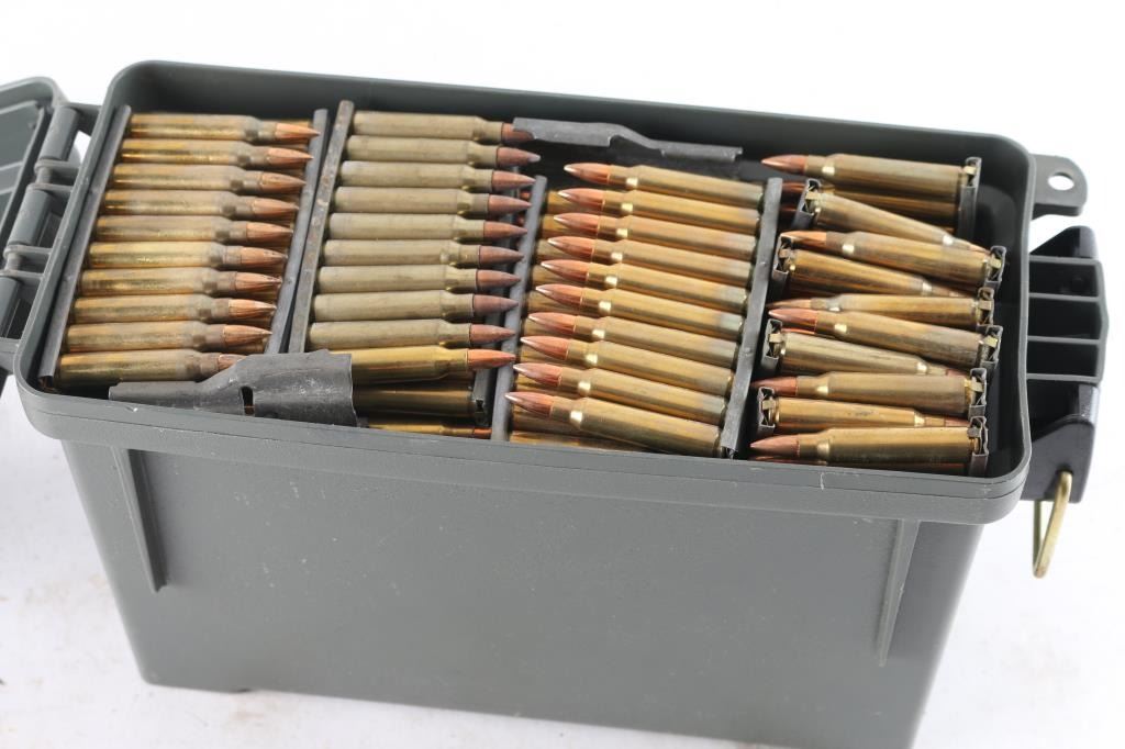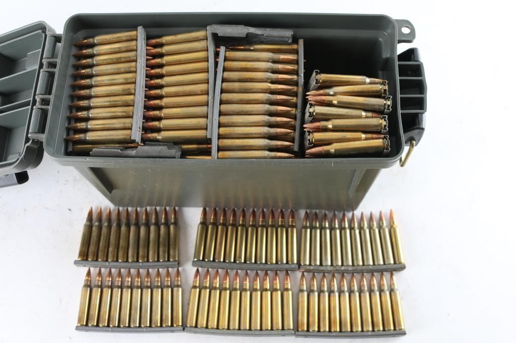 Approx. 700 rounds of new factory .223 ammunition, FMJ, on 10 round stripper clips. All in plastic ammo can.