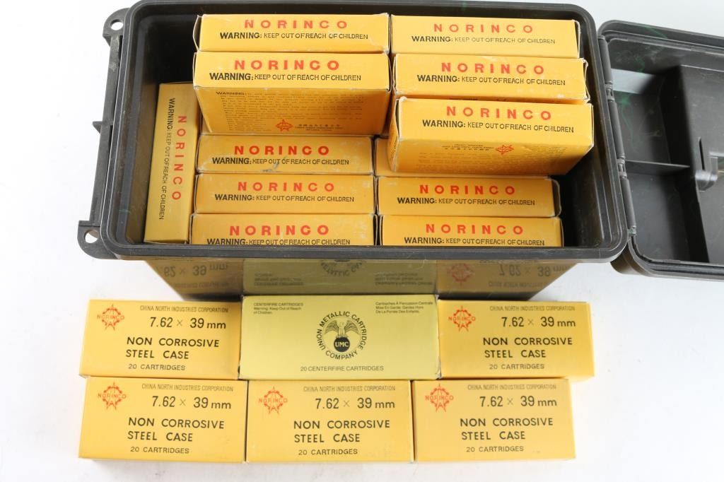 Approx. 660 rounds of new factory 7.62 X 39mm ammunition, UMC & Norinco make, in factory boxes. All in plastic ammo can.