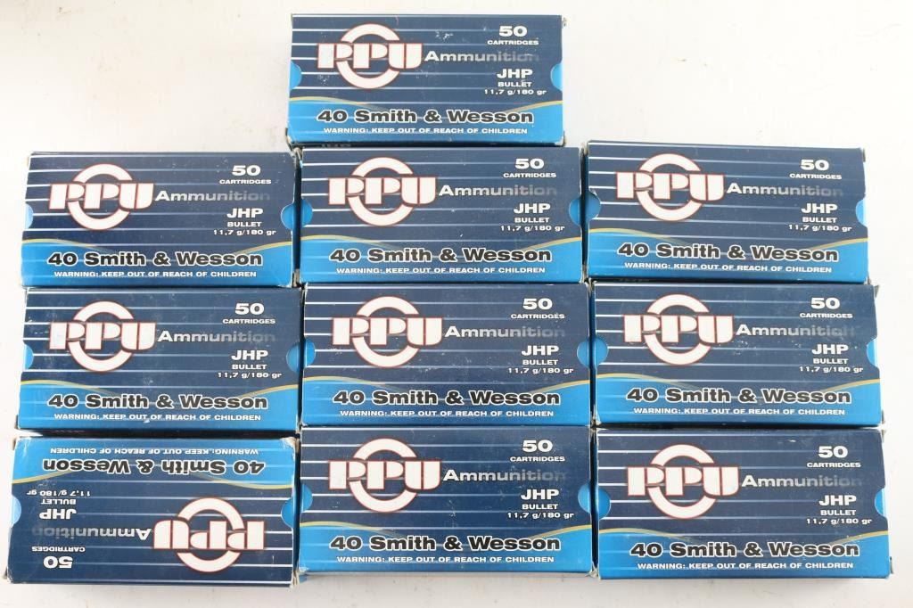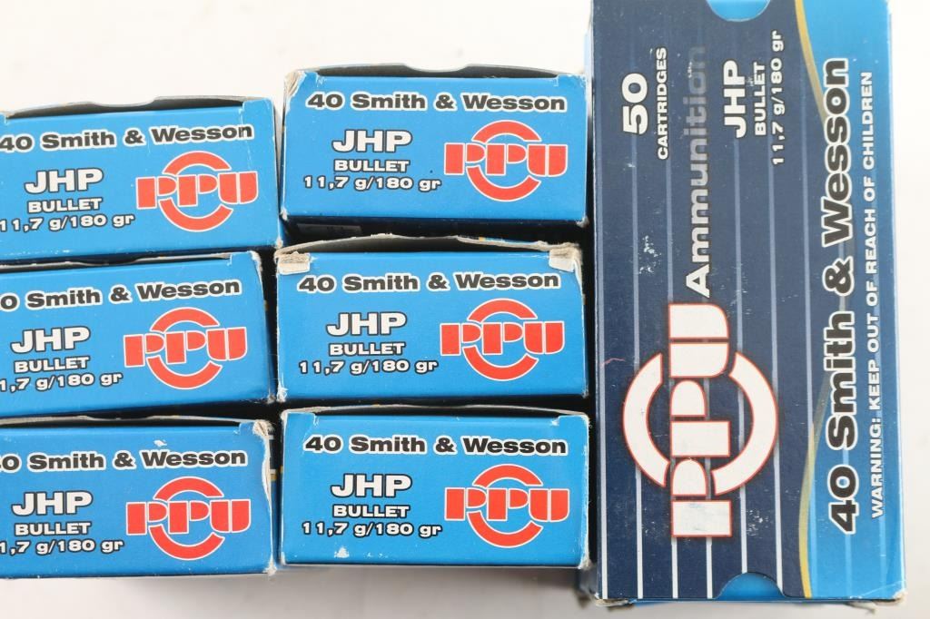 Approx. 500 rounds of new factory 40 S&W ammunition, made by Prvi Partizan (PPU), JHP in factory boxes.