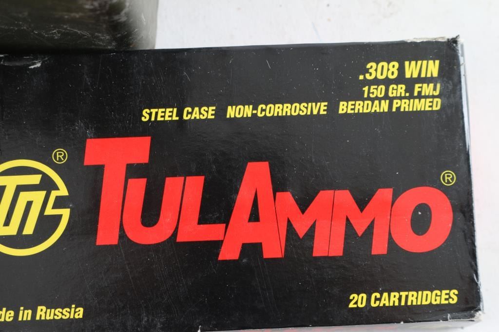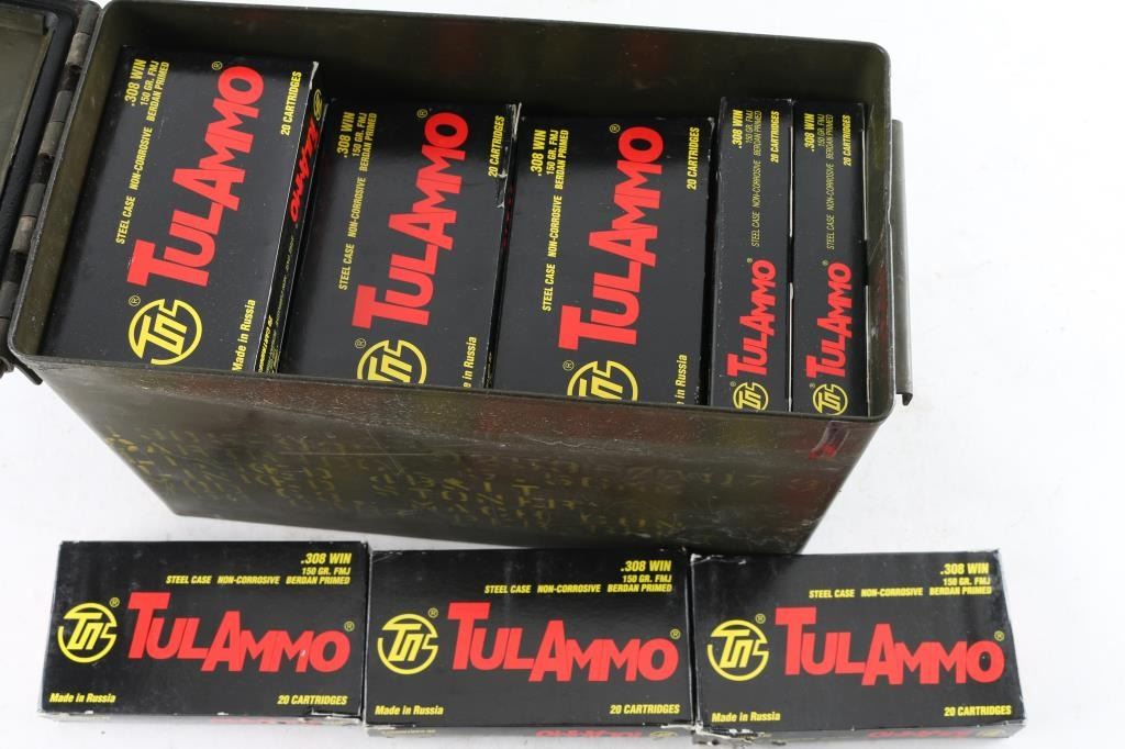 Approx. 460 rounds of factory new 308 Winchester ammunition made by Tulammo, in factory boxes. All in metal ammo can.
