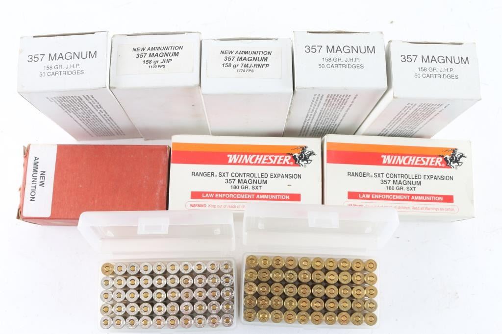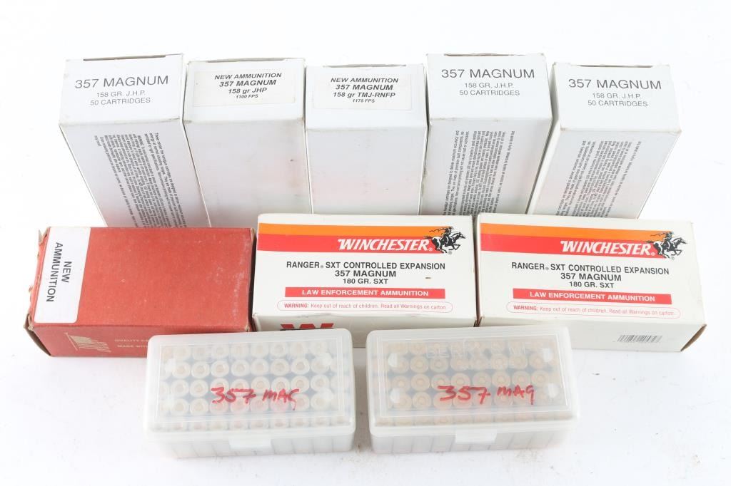 Approx. 500 rounds of 357 Mag. 400 rnds are factory new from various makers, in factory boxes and 100 rnds of reload in plastic cases.