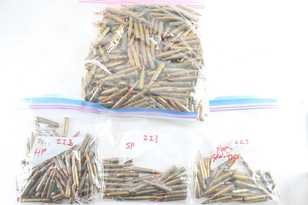 Approx. 10 Lbs of .223 Remington ammunition. Various factory loads, mostly FMJ , some hollow point, soft-tip & Green-tip. All in plastic ammo can.