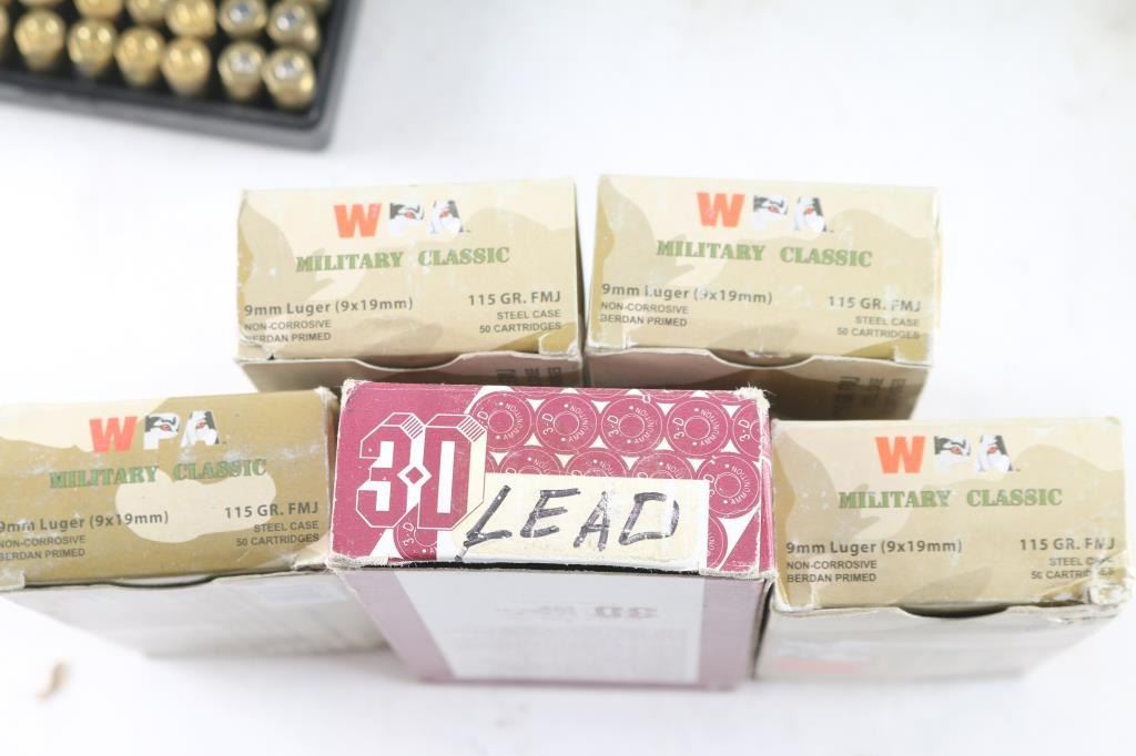 Approx. 550 rounds of 9mm ammunition. Approx. 200 rnds of factory new WPA 115 Gr. FMJ; approx. 150 rnds of reloads & the rest are loose rounds. All in plastic ammo can.