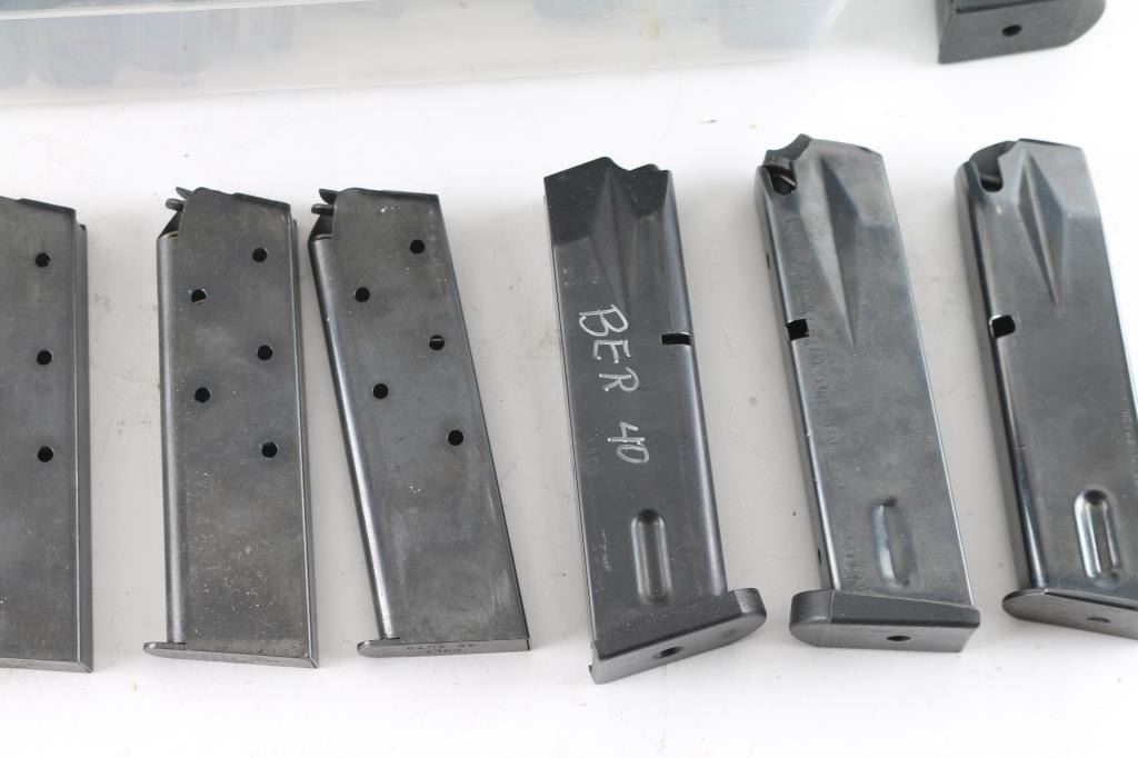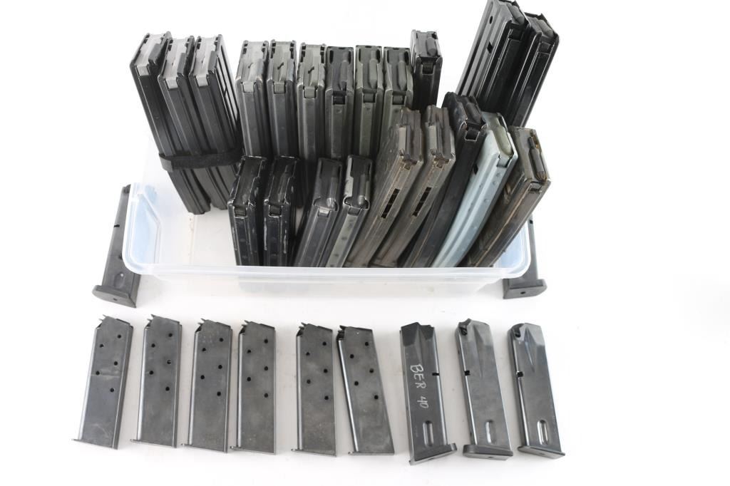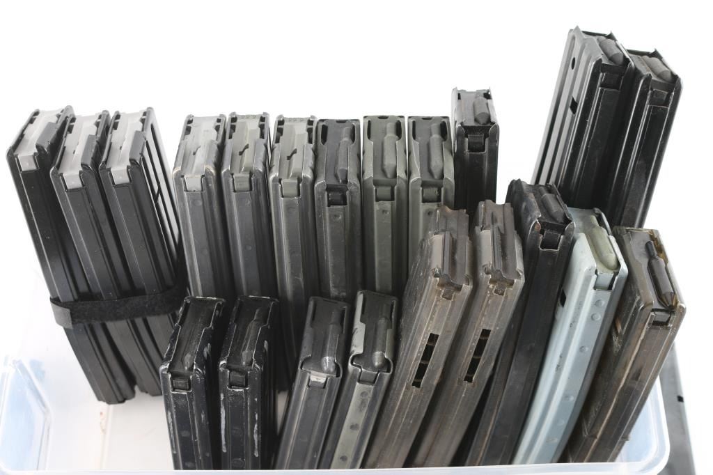 32 Total. 21 AR-180, from 10 to 40 round mags (all hand modified from AR15 style), various makes including Armalite; 6 single stack 1911; 3 Taurus 15 round 9mm & 2 Beretta 15 round 9mm.