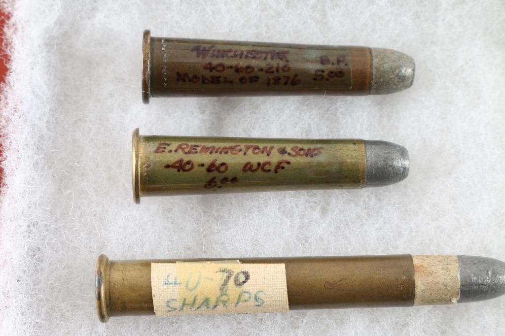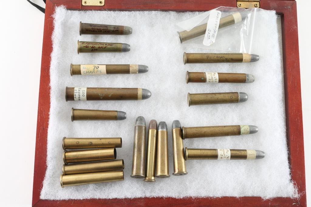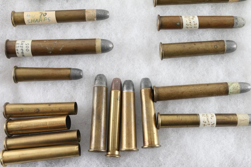 500 Express Eley, 40-70 Sharps, Winchester 76 40-60, WRA Co 40-70, 47-70 Sharps, UMC 45-70, and several others. 18 total.