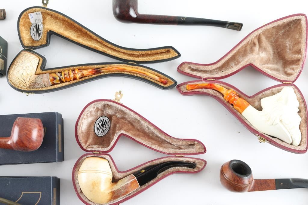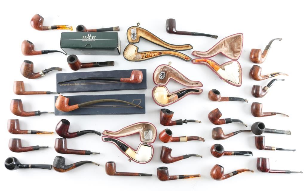 Several wood pipes, Mershawn pipes, Bentley pipes, Churchwarden, and more.
