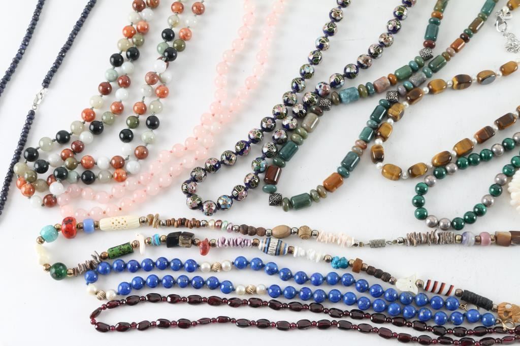 Jade, Cloissiane, Rose Quartz, Lapis, Tiger Eye, Malachite, Sapphire, Marble And Glass.
