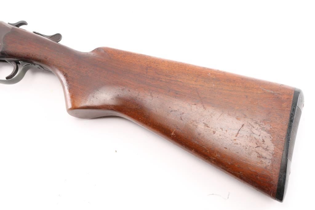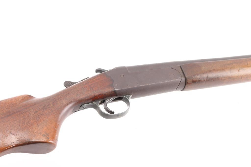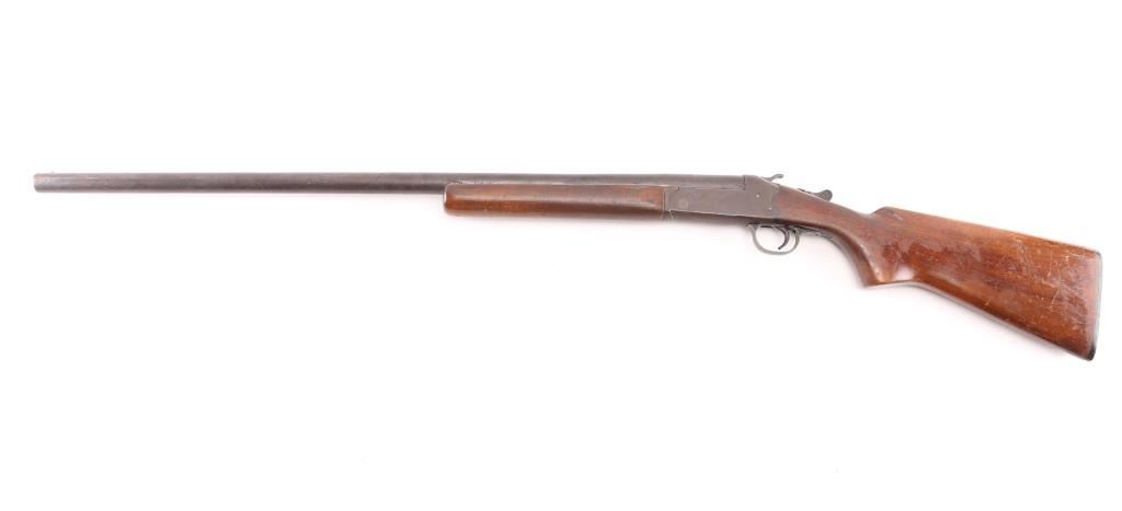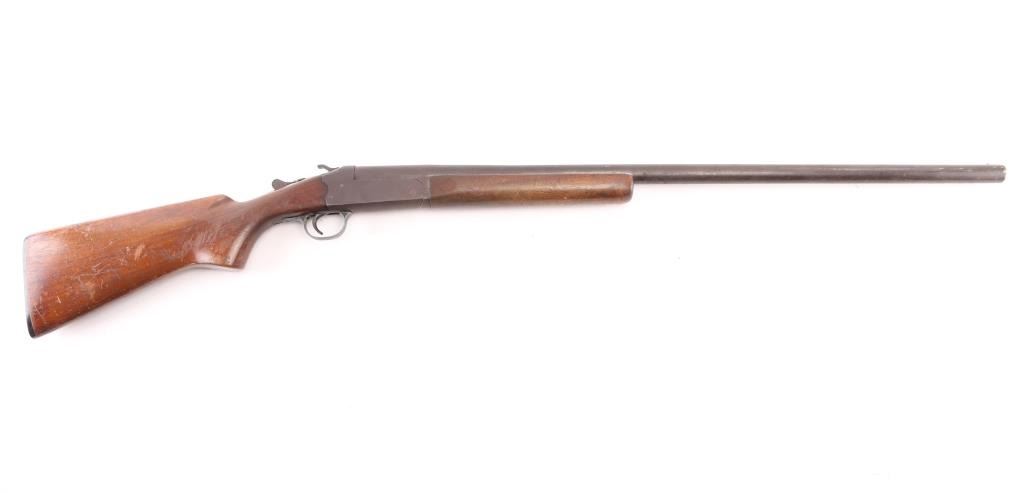 Exposed hammer single shot break-open shotgun chambered for 12 gauge shells, 30" barrel with 2 3/4" chamber, Full Choke, automatic ejector, brass bead front sight, smooth trigger, serrated hammer spur, knurled top lever, smooth wood forend and semi-pistol grip shoulder stock stock with factory buttplate 14" LOP. Shotgun exhibits a molted brown/gray patina to the entire metal finish, scattered light pitting. Action is sound, the bore is very good, the wood stocks are good/sound, forearm is loose. NRA Condition- Fair. C&R Firearm.