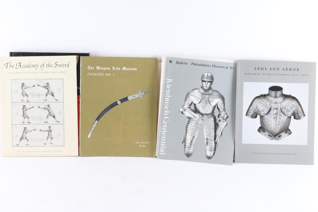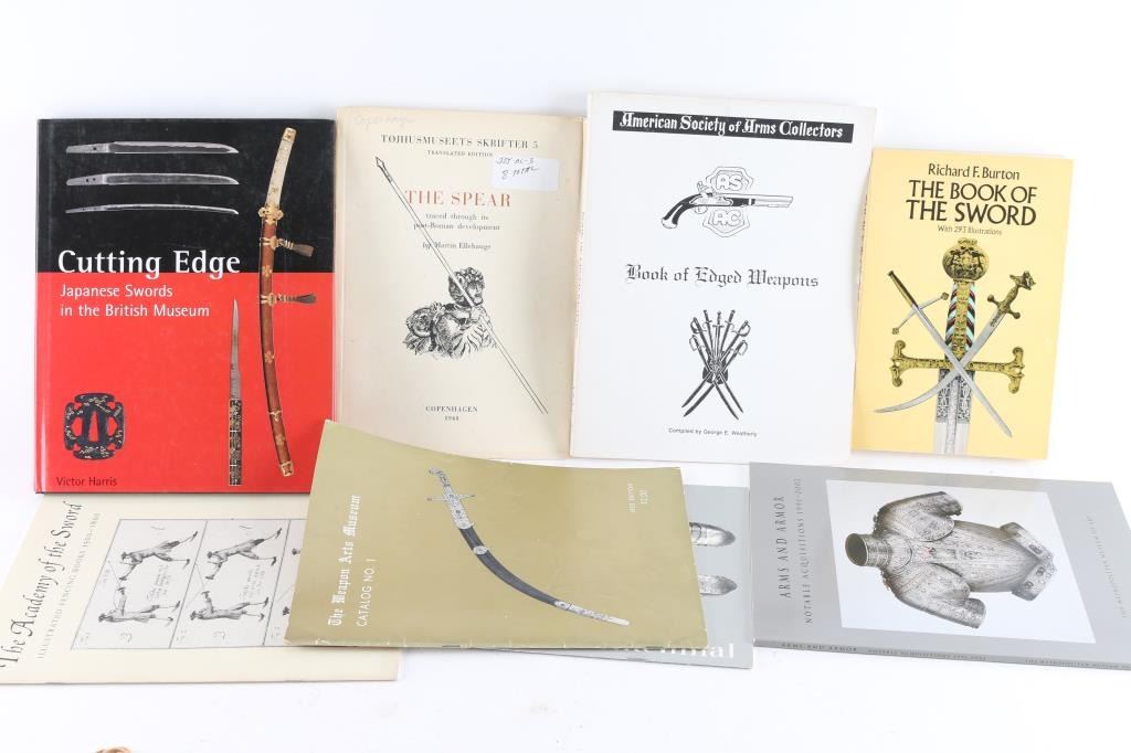 including "The Spear traced through its post-Roman development" by Martin Ellehauge, published in 1948 in Copenhagen, deckle-edged pages. "The Book of the Sword" by Richard F. Burton. "The Book of Edged Weapons" - American Society of Arms Collectors, 1997. "Cutting Edge" Japanese Swords in the British Museum and four others.