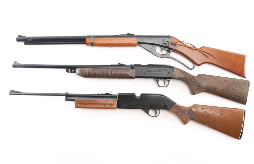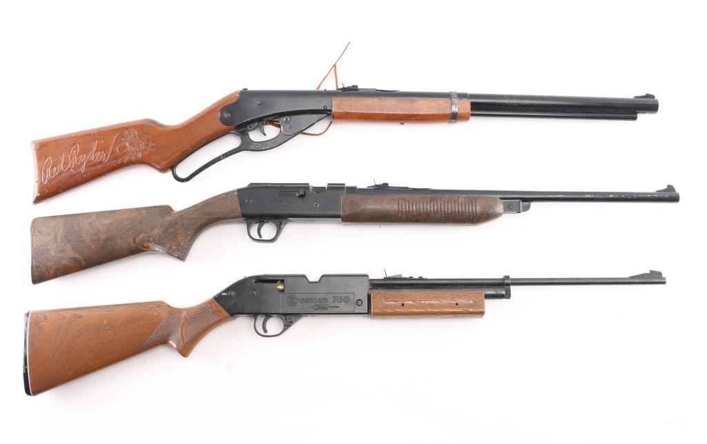 1) Crosman 760 .177 cal, manual safety, pump action. Very good condition, operable. 2) Daisy Model 840/841 .177 cal. manual safety, pump action. Very Good condition, operable. 3) Daisy Red Ryder, lever action, .177 cal, very good condition, operable.