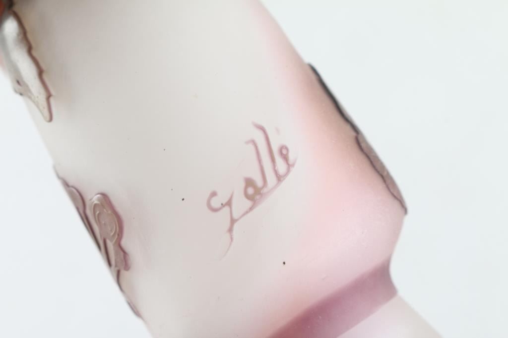 Vintage Glass art design vase is signed Galle' , ~ 4" tall.