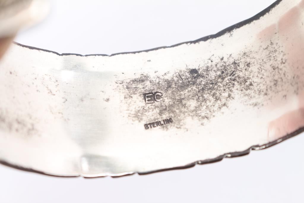set with oval cut turquoise in sterling silver maker marked "EC",.