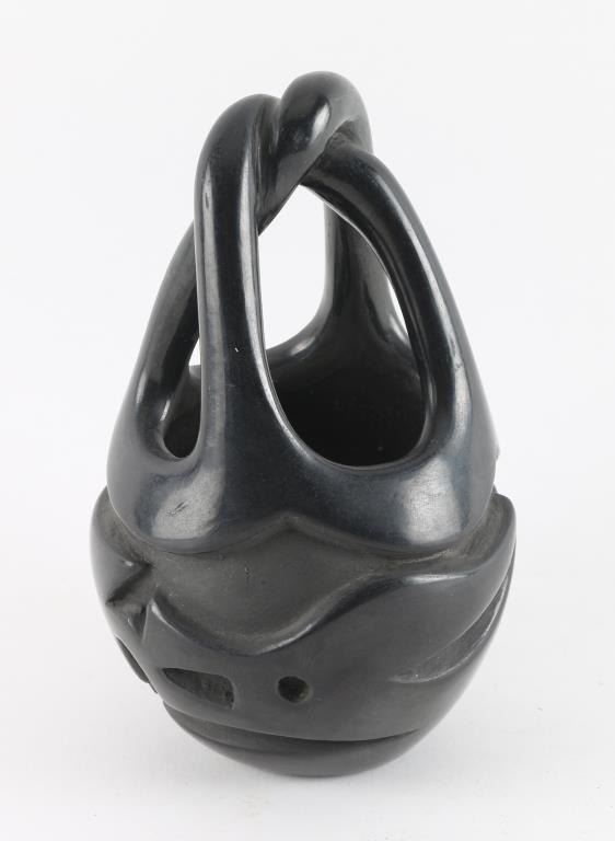 By artist "Madeline Naranjo" signed on bottom of base, beautifully twisted handle, in good condition. Measures 7x4.