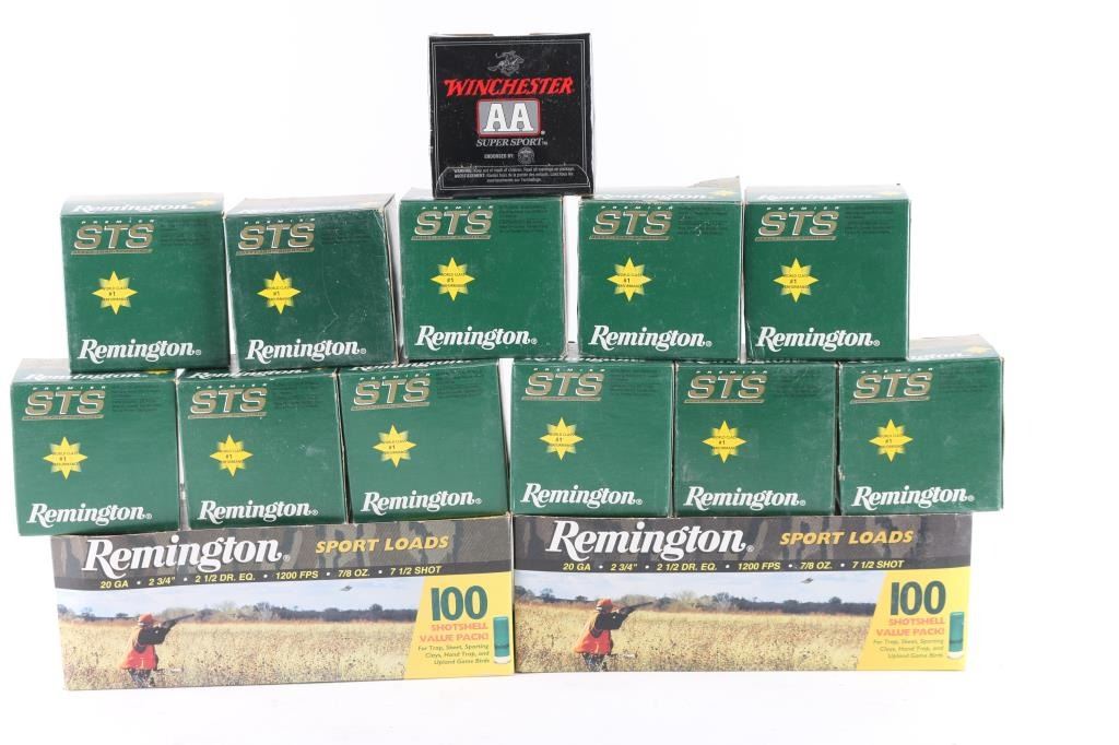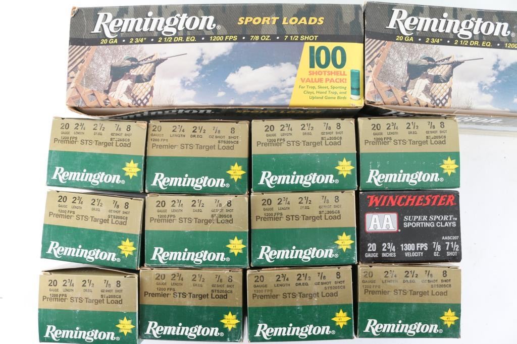 Approx. 500 rounds of 20 Gauge factory new shotshells. Mostly Remington & some Winchester, 2 1/2", 2 3/4" and various shot sizes. All in factory boxes.