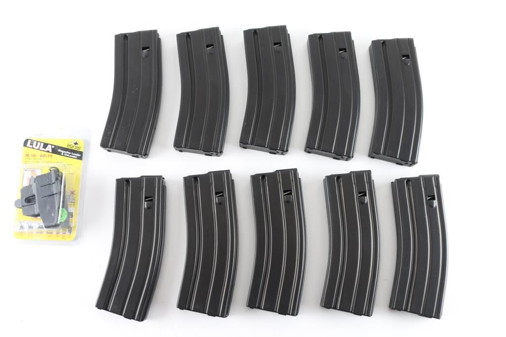 (10) Total. (10) 30 rd metal magazines for .223/ 5.56 X 45mm ammunition, made and stamped by "D & H Industries, Inc." Unused and in excellent condition. Includes LULA magazine loader.