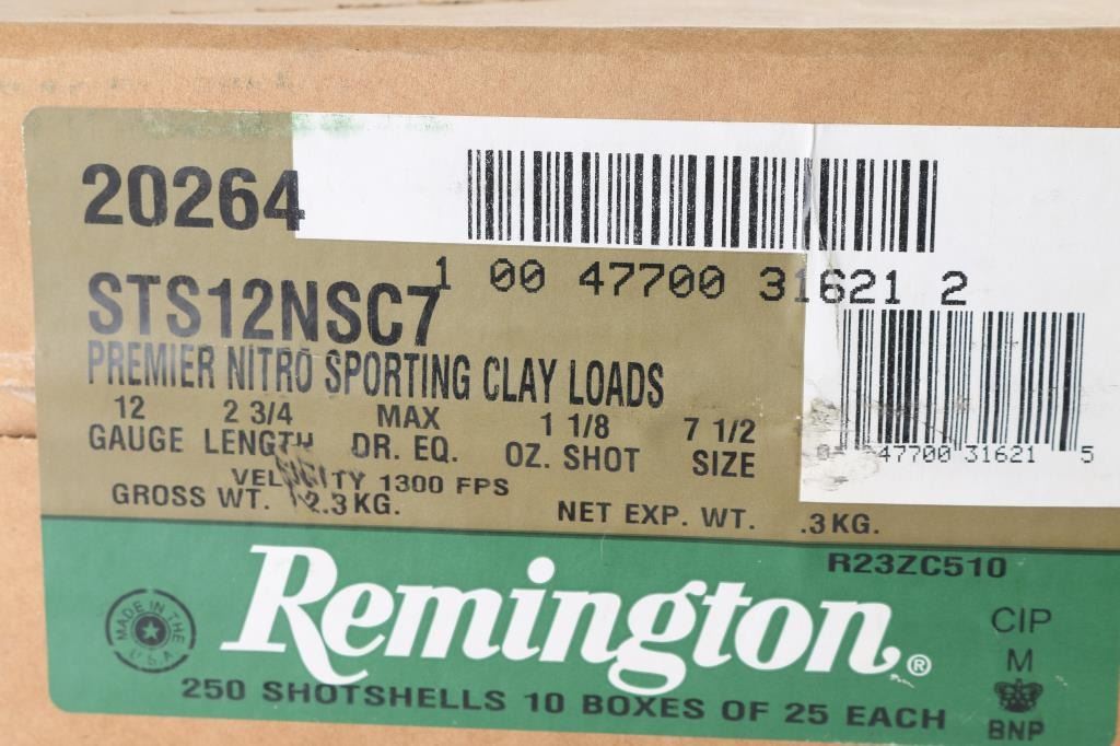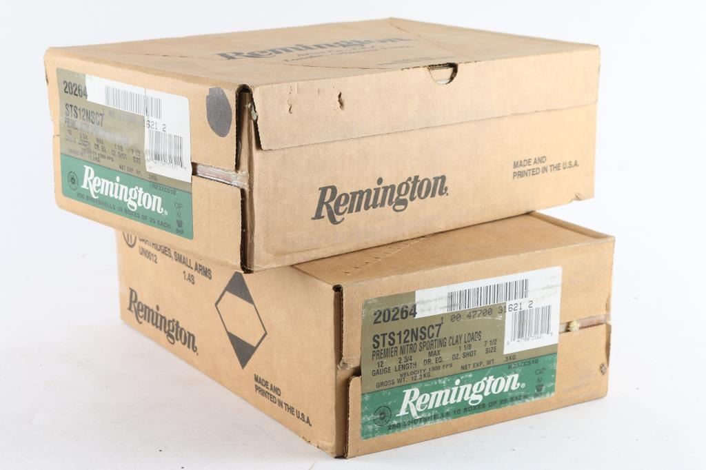 Approx. 500 rounds of 12 Ga. factory new shotshells. Remington 2 3/4", 7 1/2 shot. All in factory boxes & 2 cases.