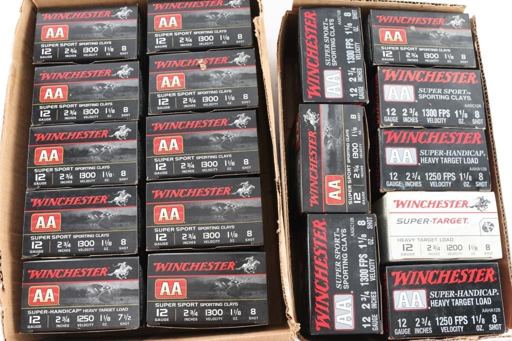 Approx. 450 rounds of 12 Ga. factory new shotshells. Winchester 2 3/4", 8 shot. All in factory boxes & 2 cases.