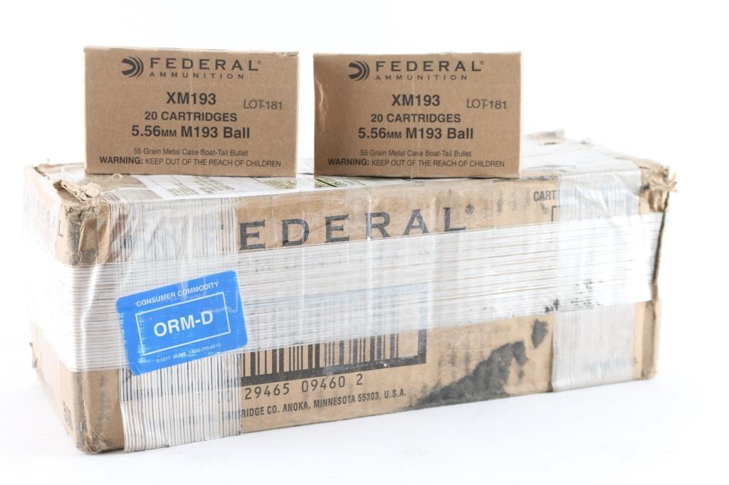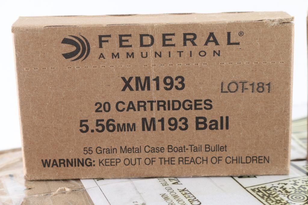 Approx. 500 rounds of 5.56 X 45mm factory new ammunition. Federal, M193 55 Gr. FMJ. All in factory boxes & 1 case.