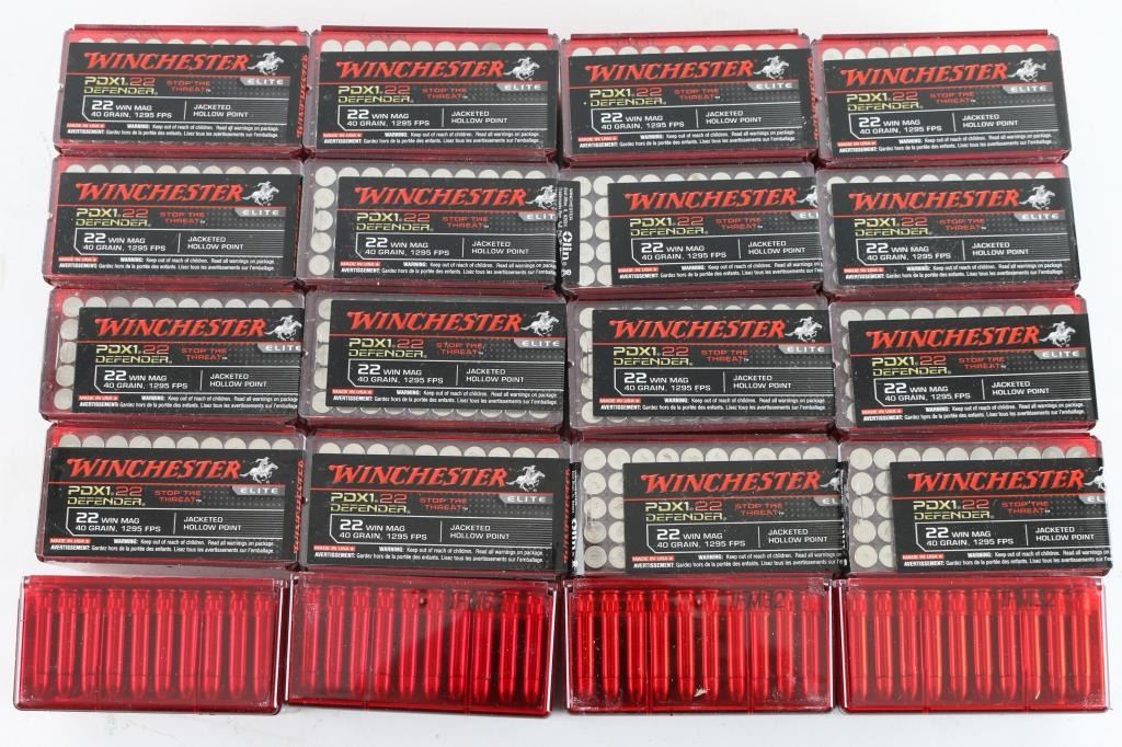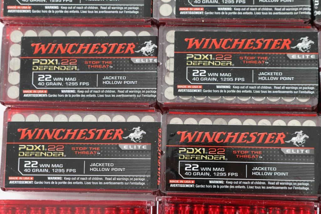 Approx. 1000 rounds of factory new .22 Win Mag ammunition. Winchester 40 Gr. JHP. 20 plastic boxes of 50 rounds each, all in 1 case.