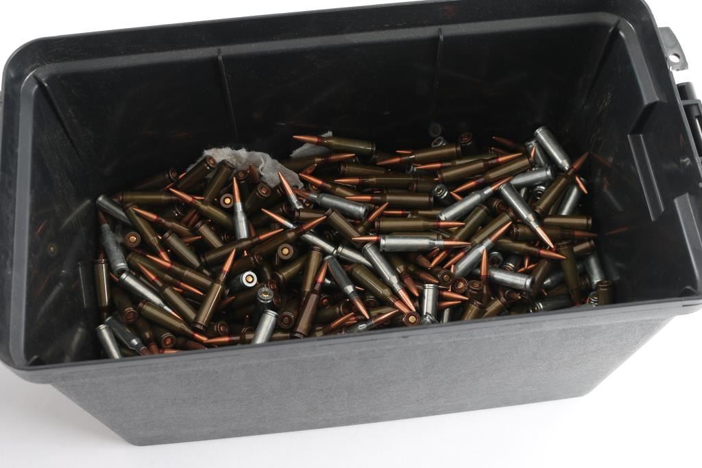 Green plastic ammo box containing approximately 700 rounds of military/factory 5.45x39mm Russian. Weight is 20.55 Lbs. Introduced in 1974 by the Soviet Union for use in the new AK-74.