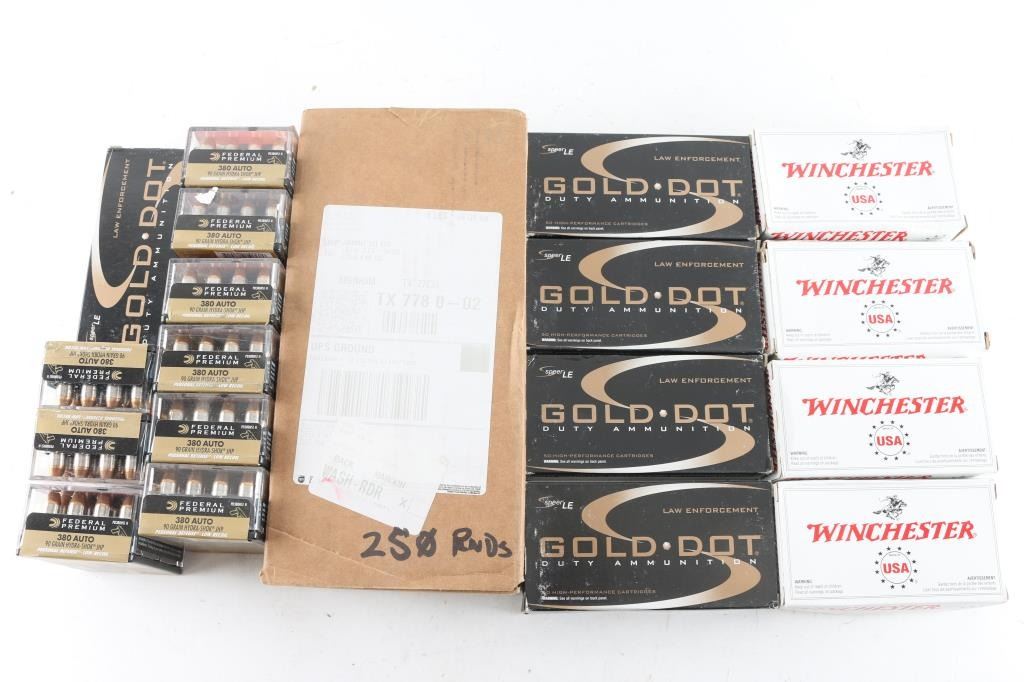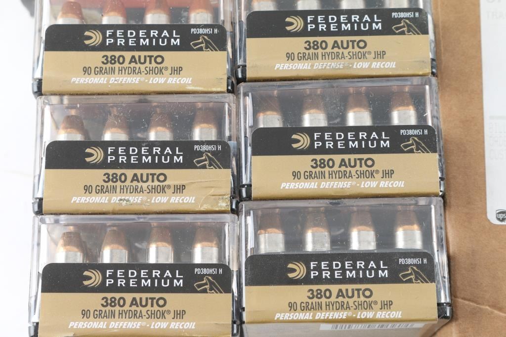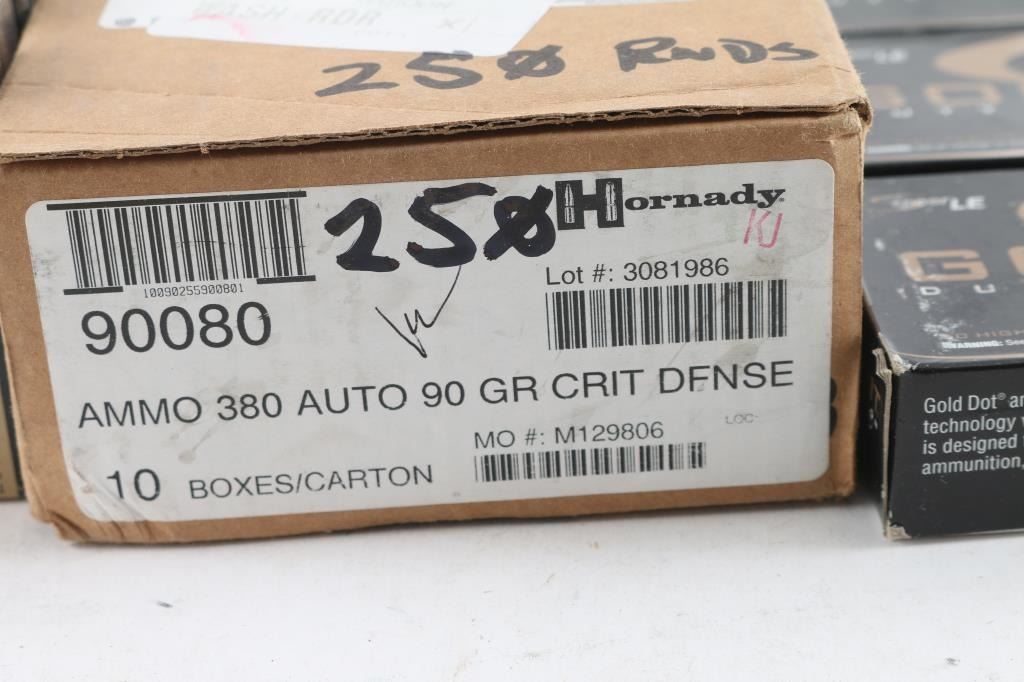 Approx. 980 rounds of 380 ACP factory new ammunition. Hornady, Federal and others. All in factory boxes.